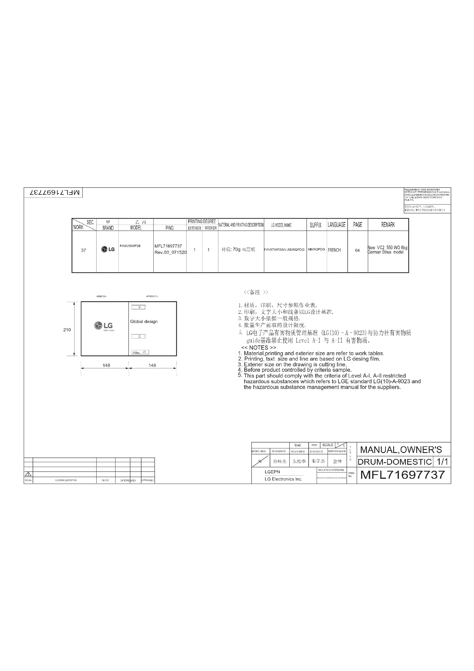 F4WV908P2E - Machine à laver LG - Notice d'utilisation et mode d'emploi gratuit