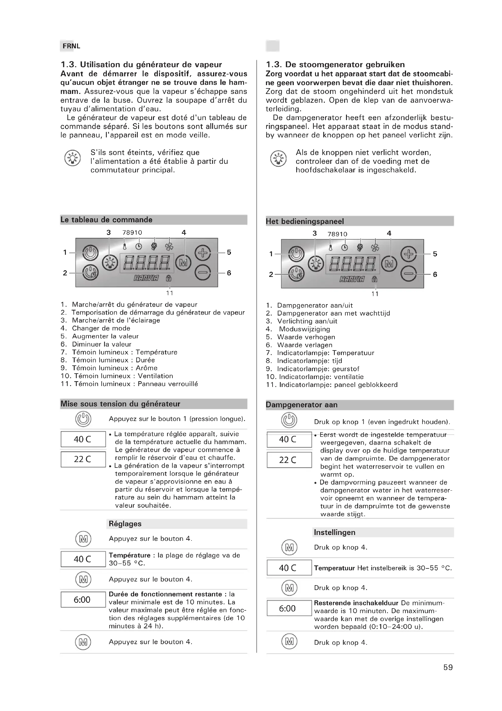 - 1.3. Utilisation du générateur de vapeur p. 59