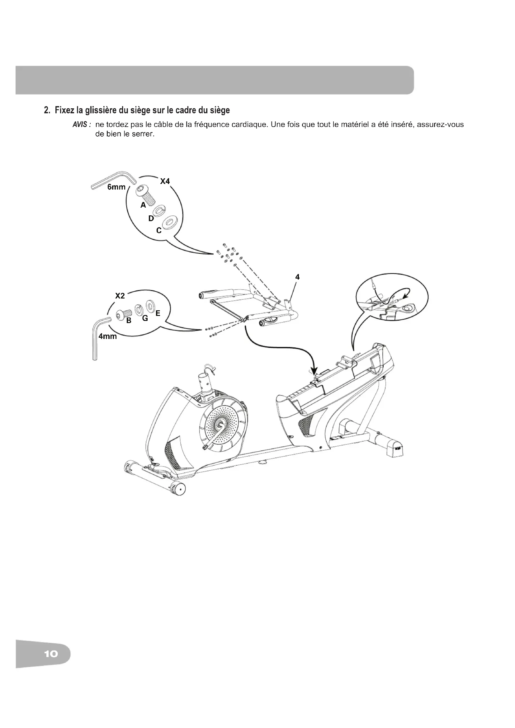 FONCTIONNEMENT Quels vêtements porter? 3RUWH]GHVFKDXVVXUHVDWKOpWLTXHVjVHPHOOHVHQFDRXWFKRXF3RUWH]GHVYrWHPHQWVDSSURSULpVjO¶HQWUDLQHPHQWTXL YRXVSHUPHWWHQWGHYRXVPRXYRLUOLEUHPHQW À quelle fréquence s’entrainer? Consultez un médecin avant de commencer un programme d’entrainement. Arrêtez l’exercice si vous pSURXYH]GHODGRXOHXURXGHODJrQHjODSRLWULQHVLYRXVDYH]GHODGLႈFXOWpjUHVSLUHURXVLYRXVYRXV sentez défaillir. Consultez un médecin avant de réutiliser l’appareil. Les données calculées ou mesurées par O¶RUGLQDWHXUGHO¶DSSDUHLOVRQWSXUHPHQWLQGLFDWLYHV/DIUpTXHQFHFDUGLDTXHDႈFKpHVXUODFRQVROHHVW approximative et ne doit être utilisée qu’à titre indicatif.