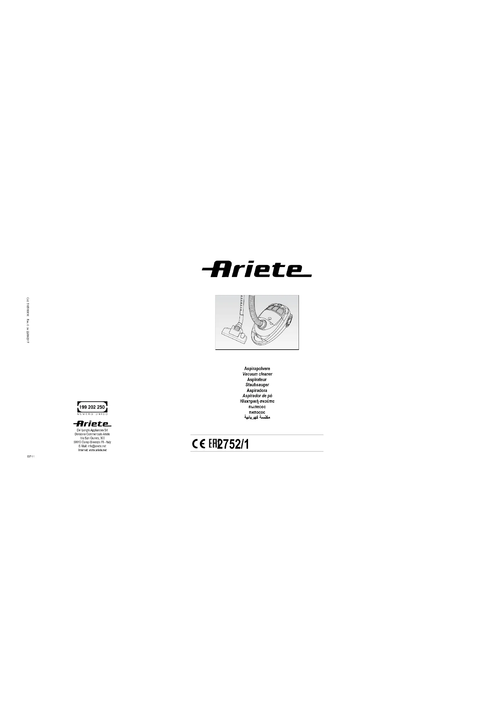2752 - Aspirateur ARIETE - Notice d'utilisation et mode d'emploi gratuit