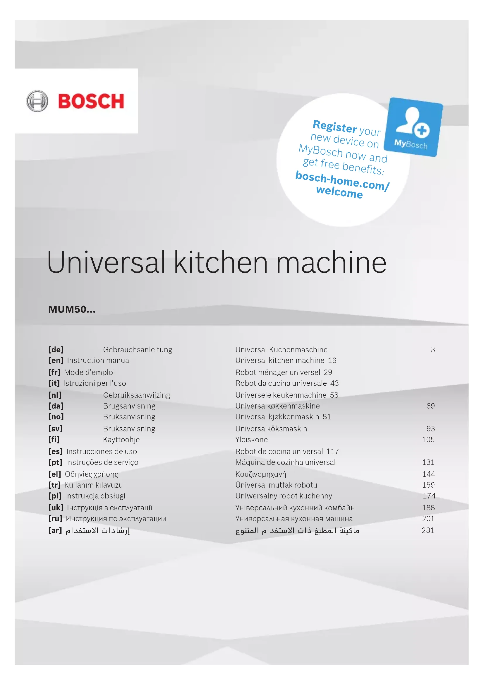 Retrouvez gratuitement la notice de l'appareil MUM50131 BOSCH au format PDF.