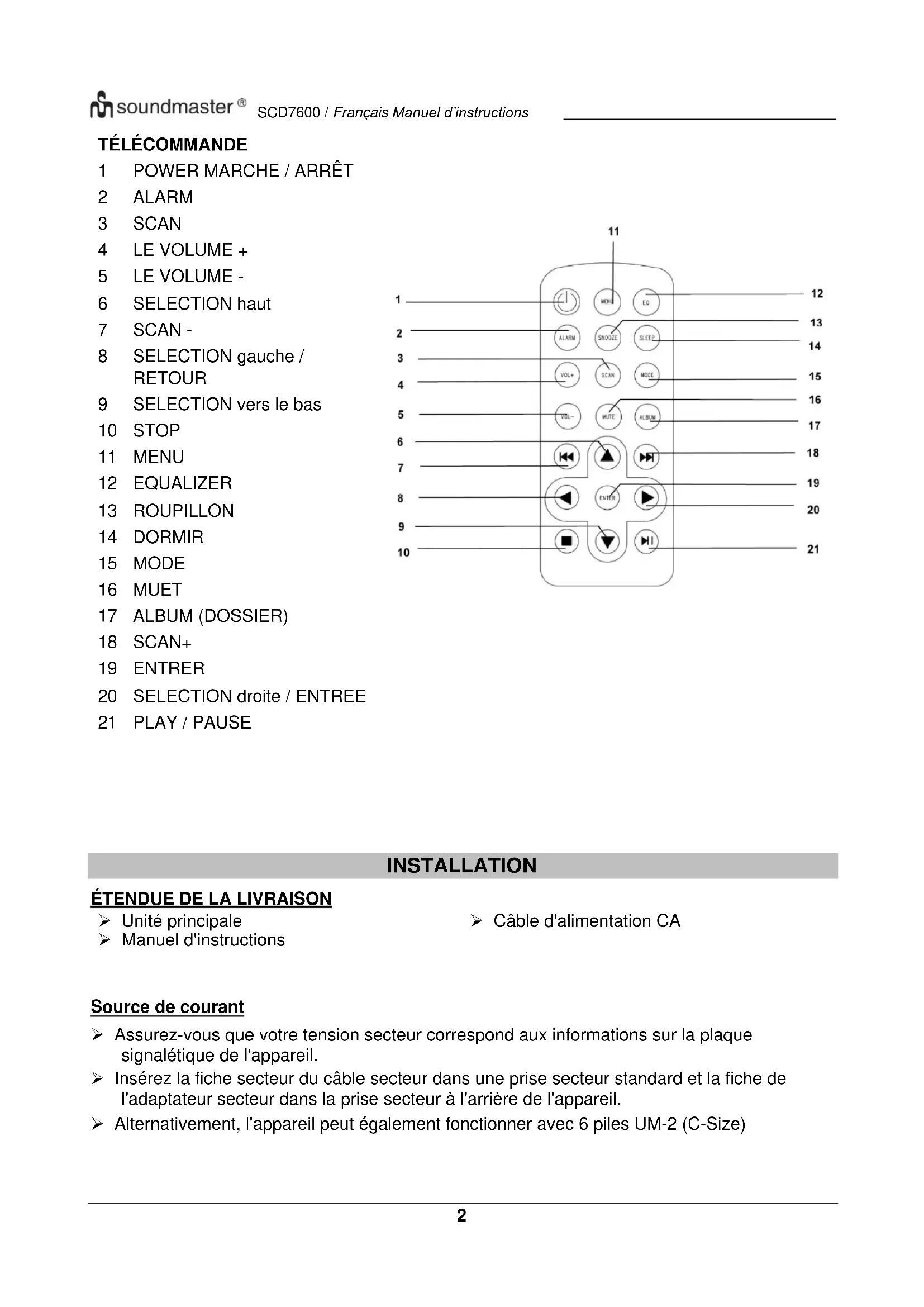 SCD7600 - Radio Soundmaster - Notice d'utilisation et mode d'emploi gratuit