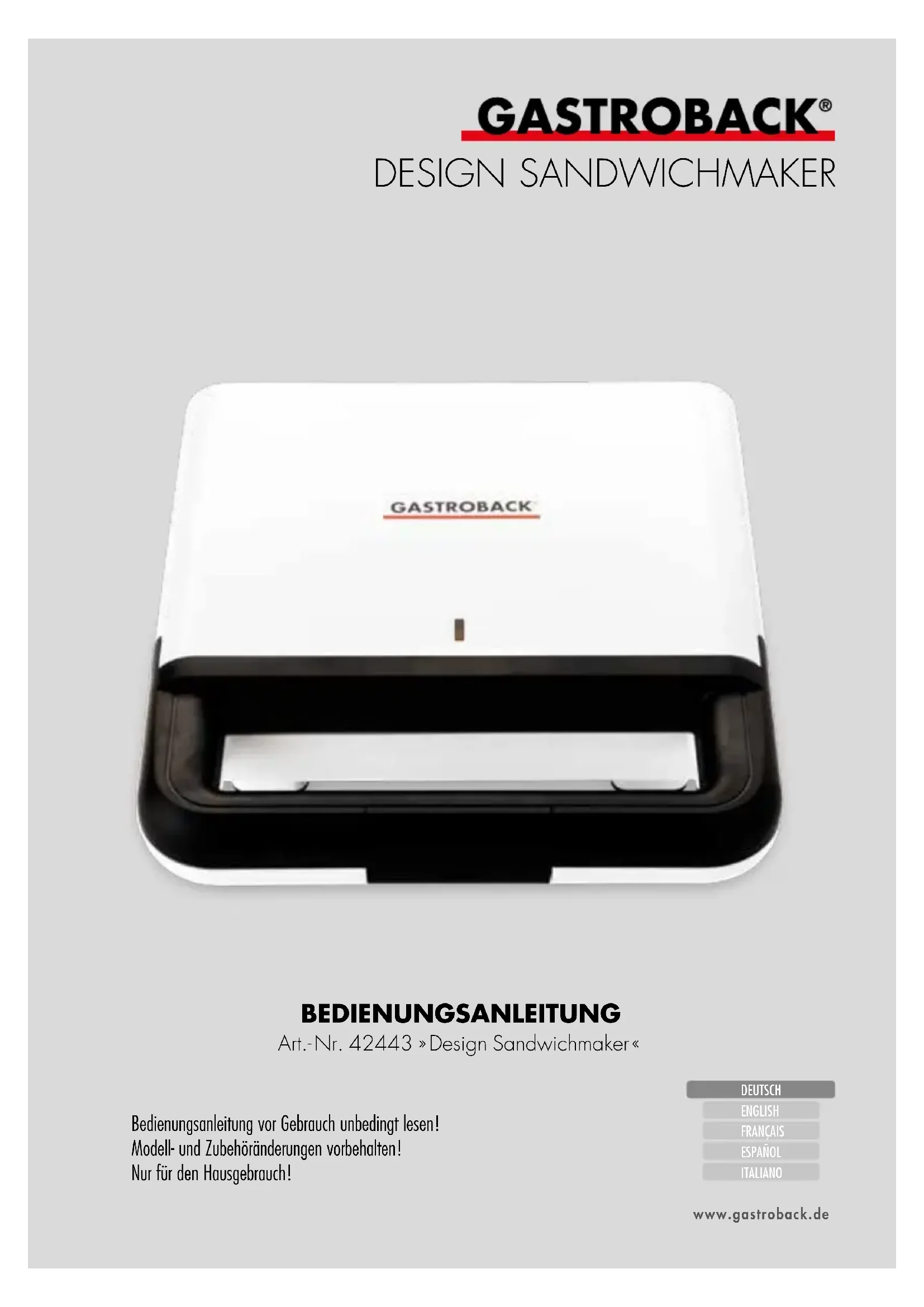 Retrouvez gratuitement la notice de l'appareil Design Sandwich Maker 42443 Gastroback au format PDF.
