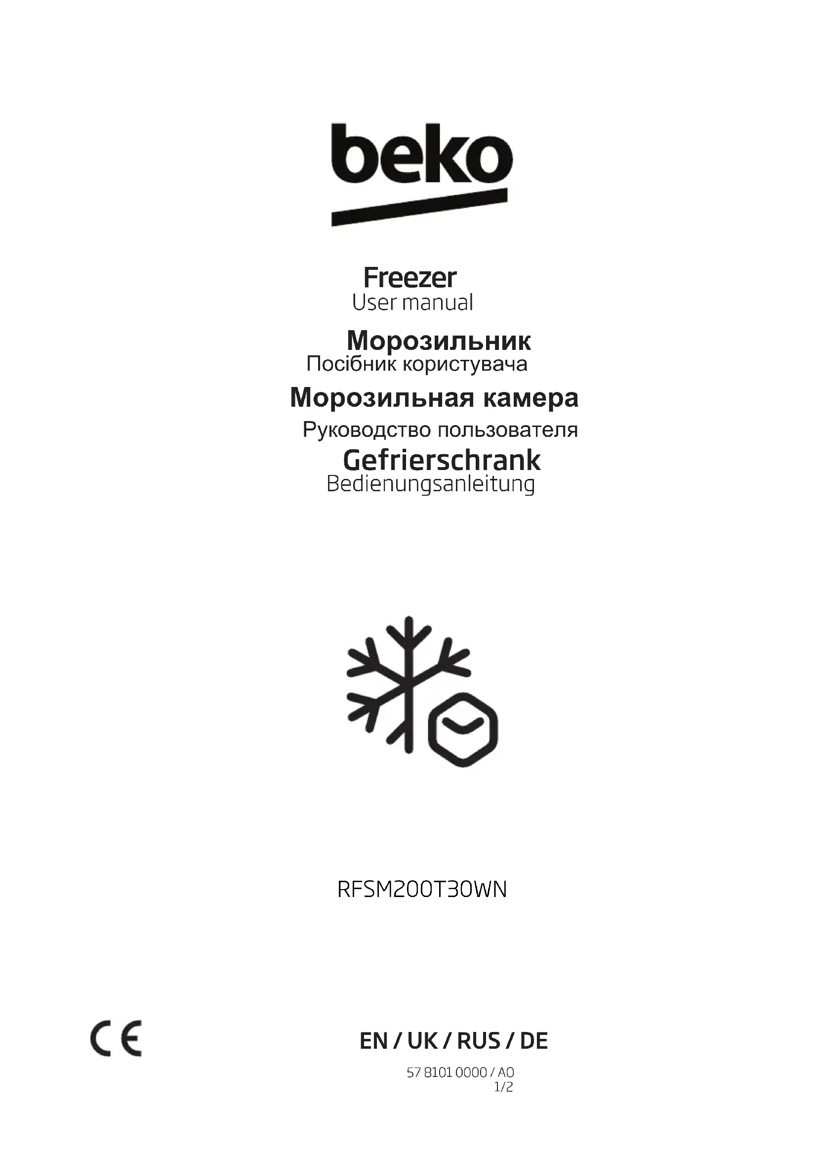 Der Hersteller/Verkäufer kann in keinem Fall haftbar gemacht werden, in dem Endbenutzer die oben genannten Bestimmungen nicht einhalten. Die Ersatzteilverfügbarkeit des von Ihnen gekauften Kühlschrank beträgt 10 Jahre. Während dieser Zeit stehen Originalersatzteile zur Verfügung, um den Kühlschrank ordnungsgemäß zu betreiben. Die Mindestgarantiedauer für den von Ihnen gekauften Kühlschrank beträgt 24 Monate.Congélateur Manuel d'utilisation FR / NL / 57 8101 0000 / AO 2/2 Gebruiksaanwijzing Diepvriezer RFSM200T30WNVeuillez commencer par lire ce manuel d’utilisation! Cher client, Nous espérons que votre produit, qui a été fabriqué dans des usines modernes et vérifié au terme des procédures de contrôle de qualité les plus méticuleuses, vous donnera entière satisfaction. Veuillez donc lire attentivement l'intégralité de ce manuel avant de commencer à utiliser le produit et conservez-le manuel comme référence. Si vous remettez cet appareil à quelqu'un d'autre, remettez-lui également le manuel d'utilisation. Ce manuel vous aidera à utiliser votre produit ent toute sécurité et efficacement.