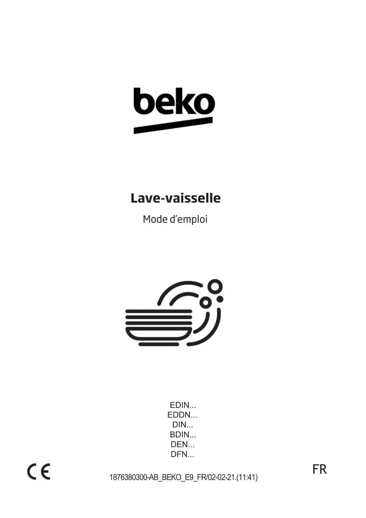 18 7638 0300-AB_BEKO_E9_FR/ 02-02-21.(11:41) EDIN... EDDN... DIN... BDIN... DEN... DFN...Les symboles suivants sont utilisés dans le manuel d’utilisation et sur l’emballage : Danger pouvant entraîner des blessures voire la mort. AVIS Danger pouvant entraîner des dommages au produit ou à son environnement. Informations importantes ou conseils utiles pour l’utilisation Veuillez lire ce manuel d’utilisateur. Cher client, Veuillez lire le présent manuel d’utilisation avant d’utiliser le produit. Merci d’avoir choisi ce produit Beko. Nous espérons que vous obtiendrez les meilleurs résultats avec notre produit fabriqué à partir d’une technologie de pointe et de matériaux de qualité supérieure. C’est pourquoi nous vous recommandons, avant d’utiliser ce produit, de lire attentivement ce manuel et tous les autres documents fournis. Veillez à bien respecter les consignes et les instructions figurant dans le manuel d’utilisation. Ainsi, vous pouvez vous protéger et protéger votre produit contre les dangers potentiels. Veuillez conserver ce manuel d’utilisateur. Si vous confiez le produit à quelqu’un d’autre, n’oubliez pas de lui remettre également le manuel d’utilisation. Ce produit a été fabriqué conformément aux conditions écologiques les plus récentes.TABLE DES MATIÈRES