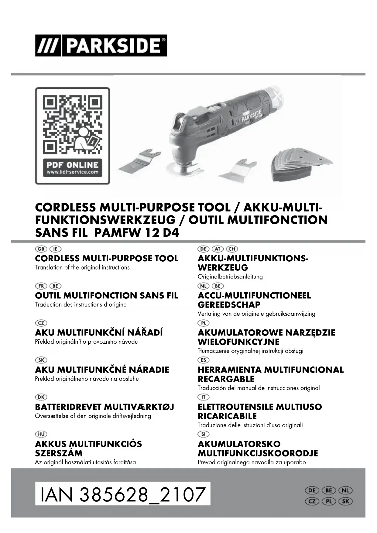 EN 60335-2-29:2004/A11:2018 EN 60335-1:2012/A2:2019 EN 62233:2008 EN IEC 63000:2018 Type/désignation de l'appareil: Outil multifonction sans fil PAMFW 12 D4 Année de construction: 12–2021 Numéro de série: IAN 385628_2107 Bochum, le 03/12/2021 Semi Uguzlu -Responsable qualité- Sous réserve de modifications techniques à des fins de perfectionnement. IB_385628_PAMFW12D4_LB8.indb 43 07.01.2022 09:48:23PAMFW 12 D4 ■ 44