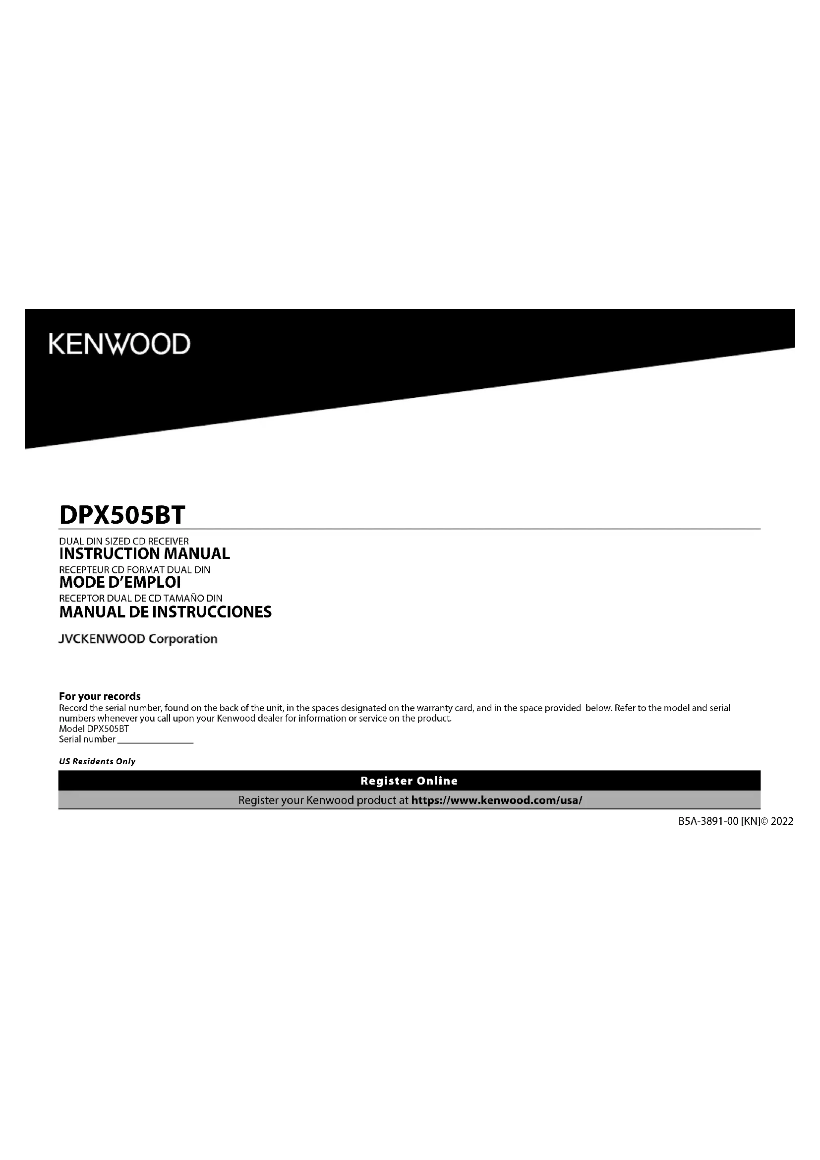 Retrouvez gratuitement la notice de l'appareil DPX505BT KENWOOD au format PDF.