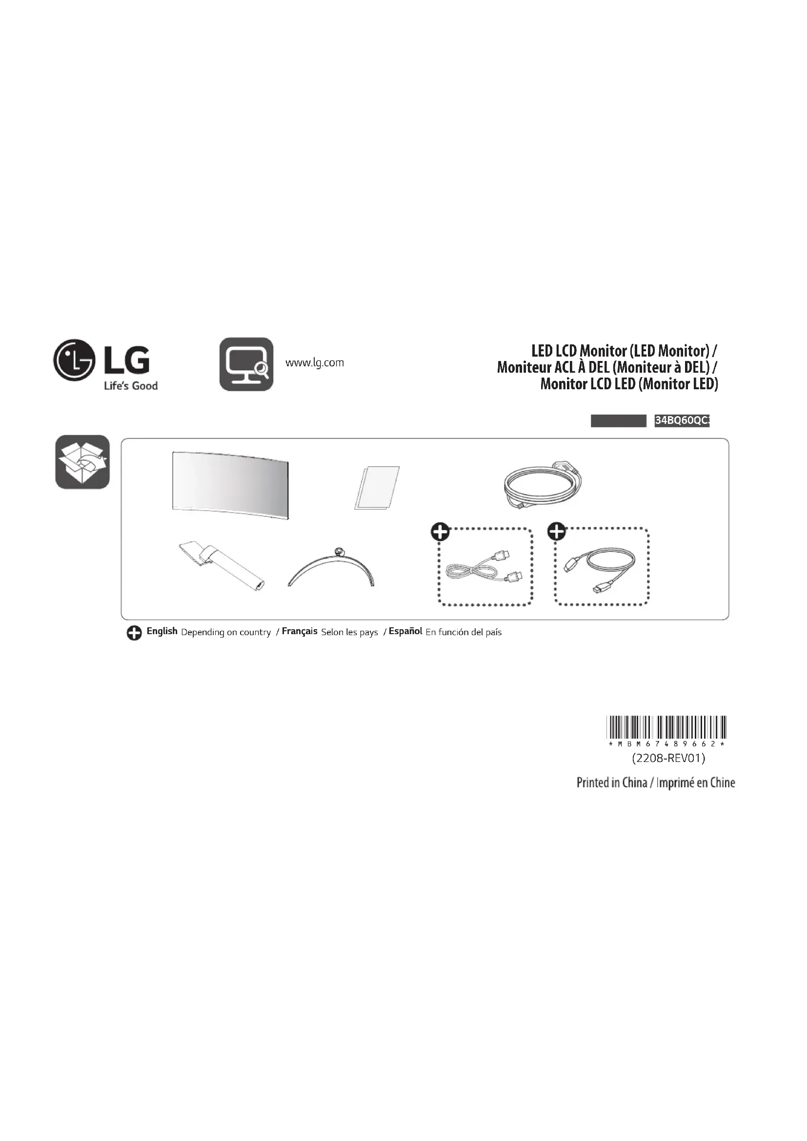 Retrouvez gratuitement la notice de l'appareil UltraWide 34WQ60C LG au format PDF.