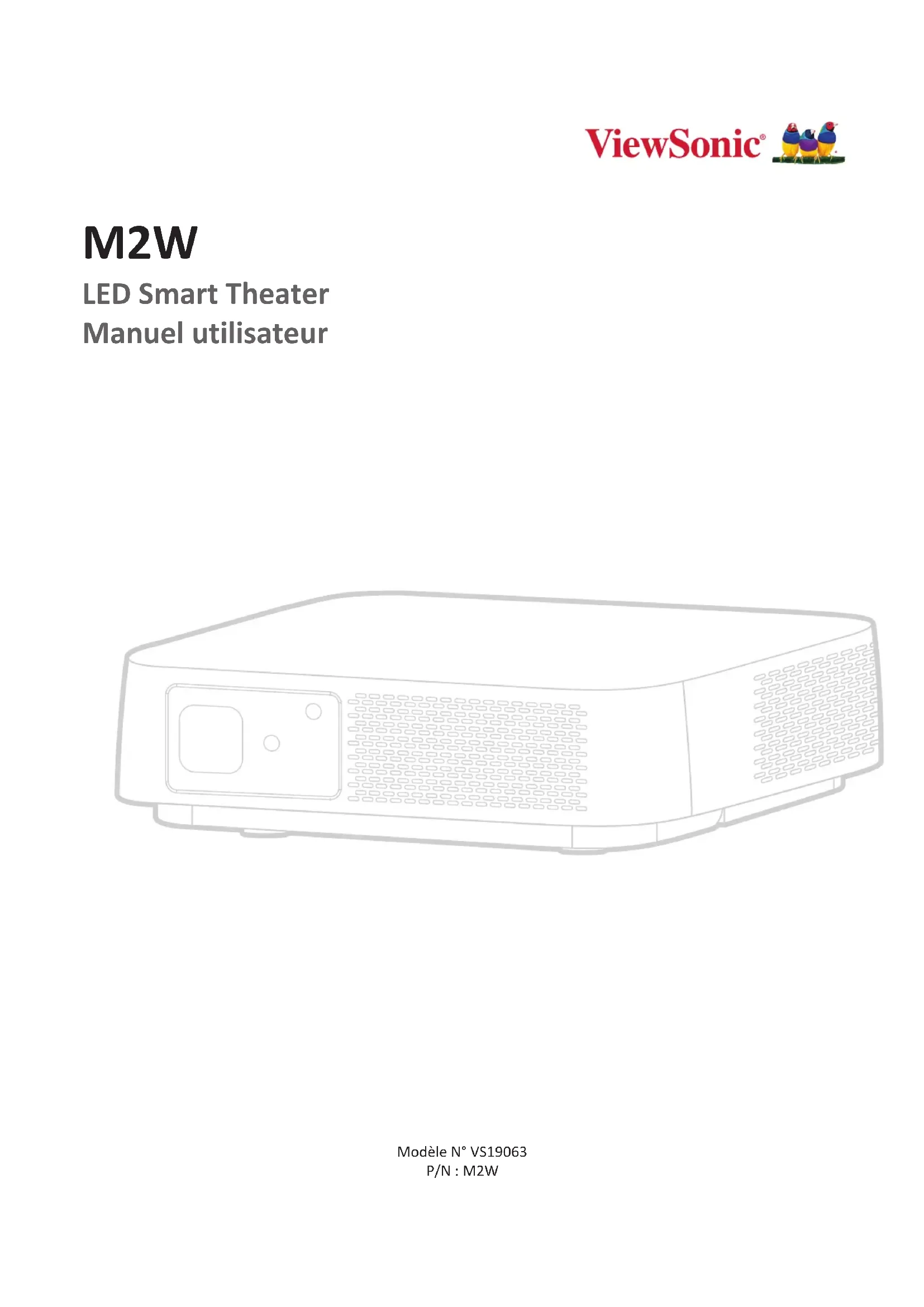 M2W LED Smart Theater Manuel utilisateur Modèle N° VS19063 P/N : M2W2 Merci d’avoir choisi ViewSonic® En tant que leader mondial de solutions visuelles, ViewSonic® se consacre à dépasser les attentes du monde en matière d’évolution technologique, d’innovation et de simplicité. Chez ViewSonic®, nous pensons que nos produits peuvent avoir un impact positif dans le monde et nous sommes convaincus que le produit ViewSonic® que vous avez choisi vous servira correctement. Une fois de plus, merci d’avoir choisi ViewSonic® !3 Précauons relaves à la sécurité Veuillez lire les Précauons de sécurité suivantes avant de commencer à uliser le projecteur.