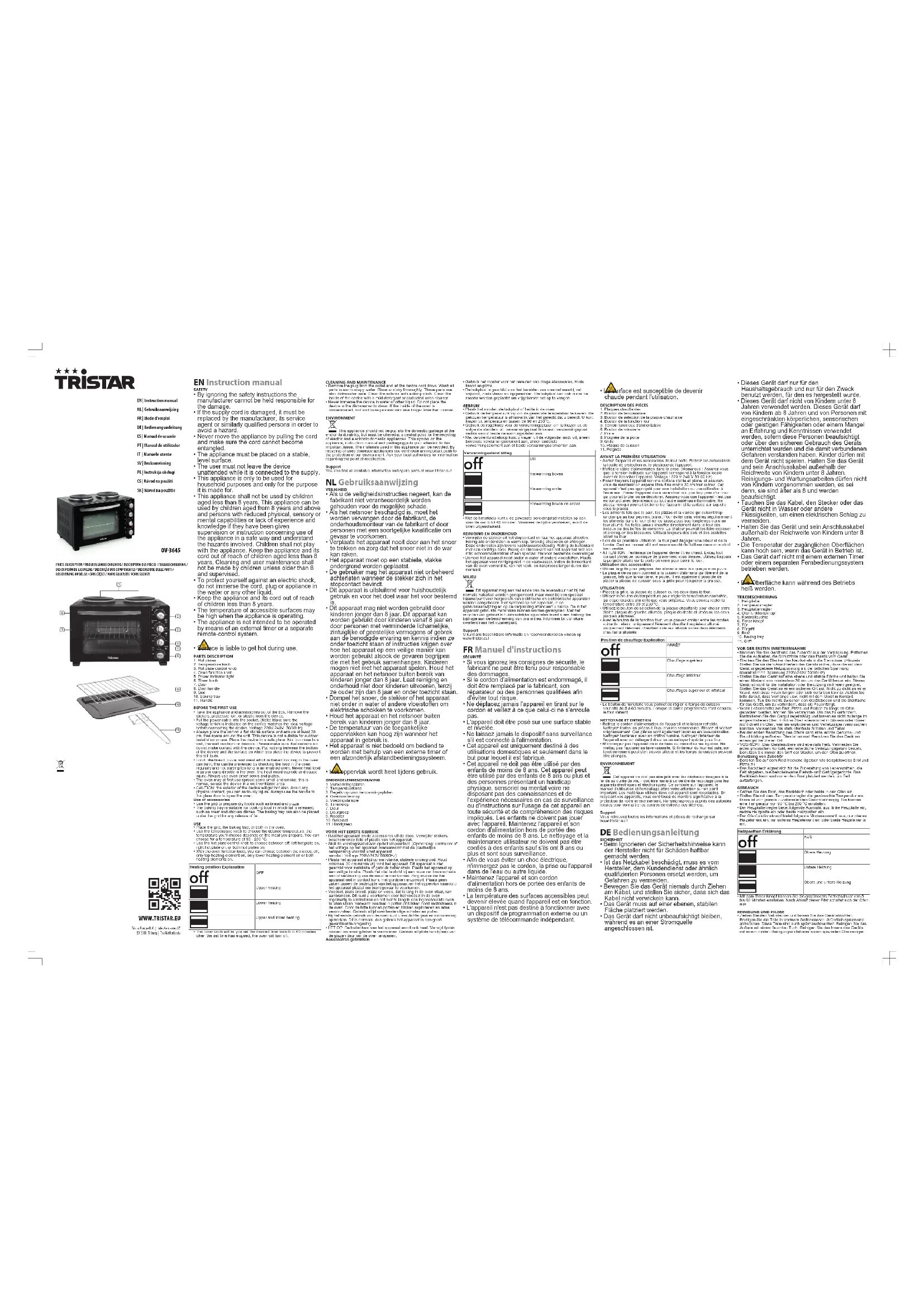 OV3645 - Four TRISTAR - Notice d'utilisation et mode d'emploi gratuit