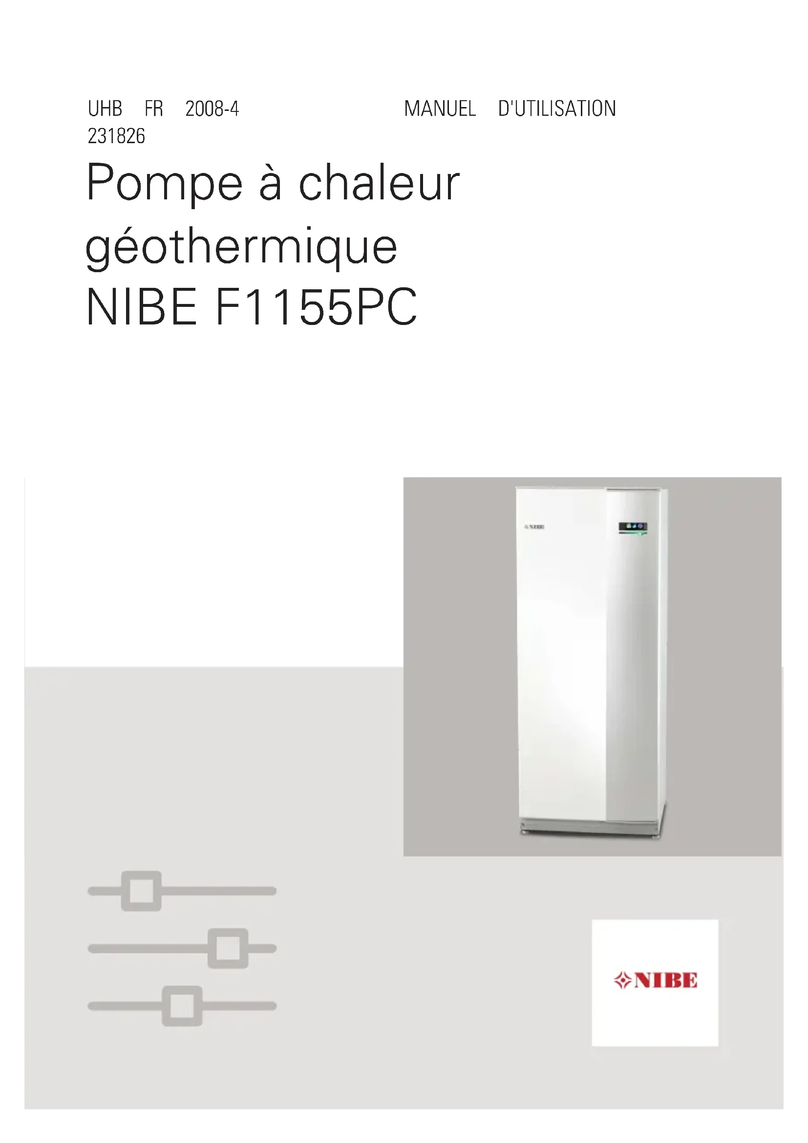 Lisez le manuel d'utilisation. Numéro de série Le numéro de série figure en bas à droite du cache avant, dans le menu Informations (menu 3.1) et sur la plaque signalétique (). NIBE F1155PCChapitre 1 | Informations importantes6Numéro de série ATTENTION! Le numéro de série du produit ((14 chiffres) est requis pour l'entretien et l'assistance. 7Chapitre 1 | Informations importantesNIBE F1155PCF1155PC – Un excellent choix F1155PC fait partie de la nouvelle génération de pompes à chaleur, co- nçues pour vous permettre de chauffer/et ou climatiser votre habitation en dépensant peu, tout en respectant l'environnement. La production de chaleur est sûre et économique grâce à un thermoplongeur, des po- mpes de circulation et un système de régulation intégrés. La pompe à chaleur peut être connectée à un système de distribution de chaleur basse température supplémentaire (par exemple, des radia- teurs, des convecteurs ou le chauffage par le sol). Elle peut également être connectée à plusieurs produits et accessoires, tels qu'un préparateur ECS, un récupérateur d'air vicié, une piscine, des systèmes émetteurs avec des températures différentes. Pour F1155PC 1x230V, un appoint électrique immergé de 4,5 kW peut être raccordé automatiquement en cas d'événement imprévu ou en co- mplément (alors 3,5 kW). Pour F1155PC 3x400V, un appoint électrique immergé de 6,5 kW peut être raccordé automatiquement en cas d'événement imprévu ou en co- mplément (alors 3,5 kW). F1155PC est équipé d'un système de régulation qui garantit le confort, la sécurité de l'utilisation et un fonctionnement économique. L'écran large et aisément lisible affiche les informations relatives à l'état, aux temps de fonctionnement et à toutes les températures de la pompe à chaleur. Cela signifie par exemple que les thermomètres externes sont inutiles. EXCELLENTES PROPRIÉTÉS POUR F1155PC :
