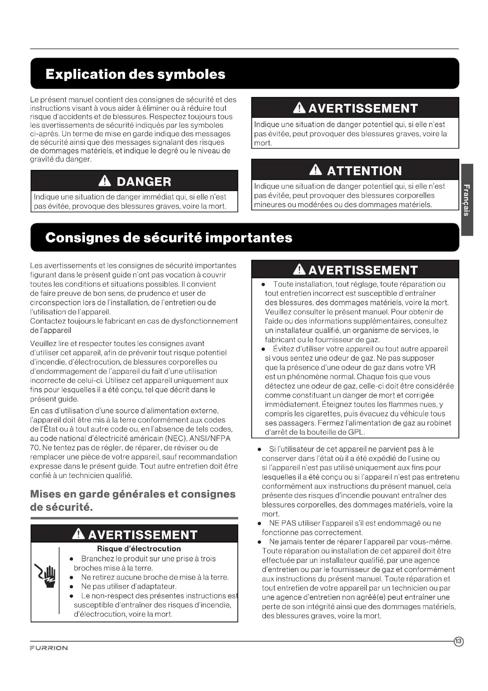 - Consignes de sécurité importantes p. 13