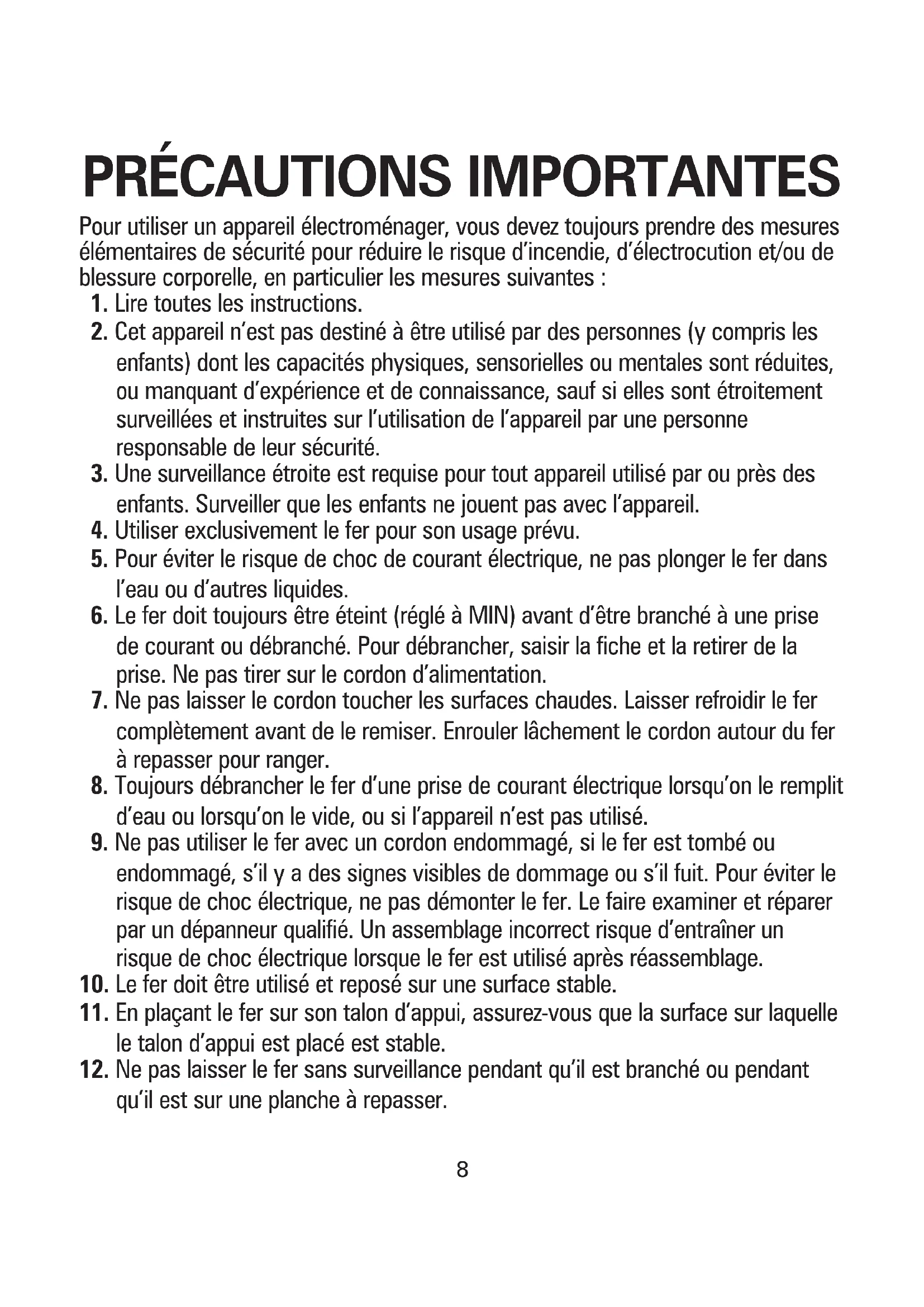 12. Ne pas laisser le fer sans surveillance pendant qu’il est branché ou pendant
