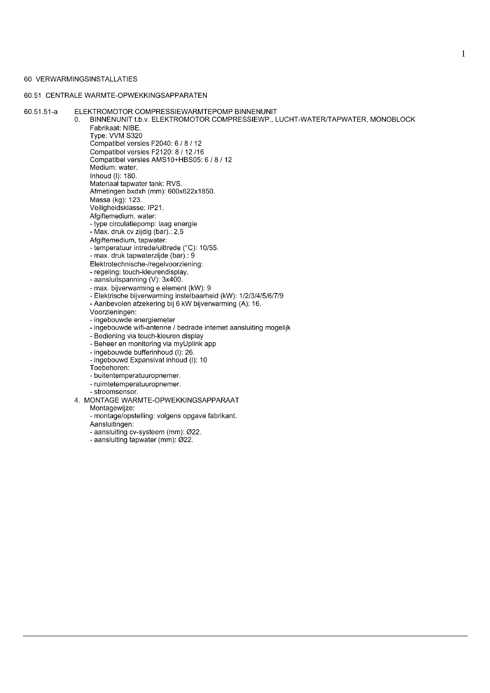 | Caractéristiques techniques | Pompe à chaleur Nibe VVM S320, système de chauffage et d'eau chaude sanitaire intégré. |