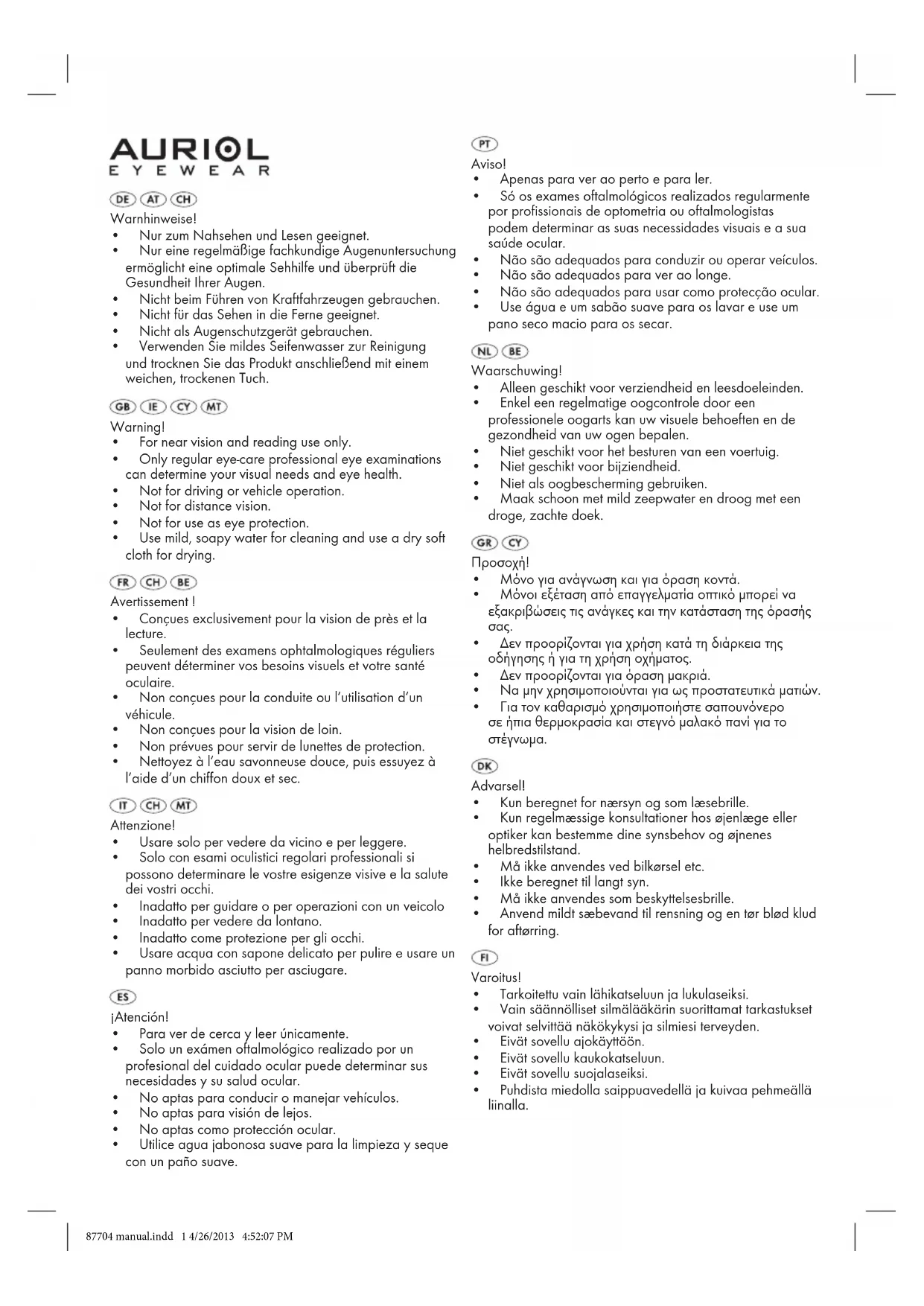 - Conçues exclusivement pour la vision de près et la lecture.