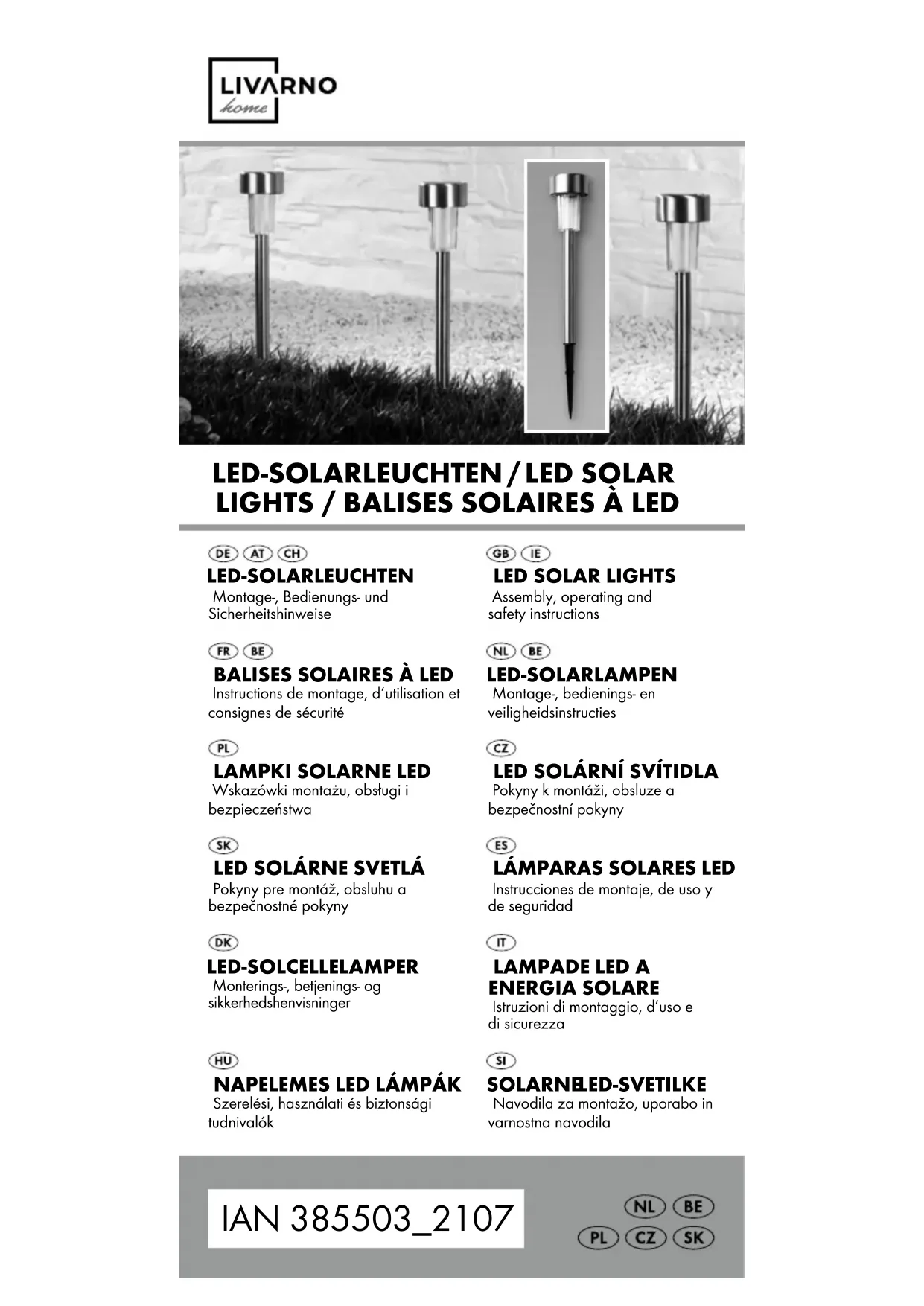 Instructions de montage, d‘utilisation et consignes de sécurité LED-SOLARLAMPEN Montage-, bedienings- en veiligheidsinstructies