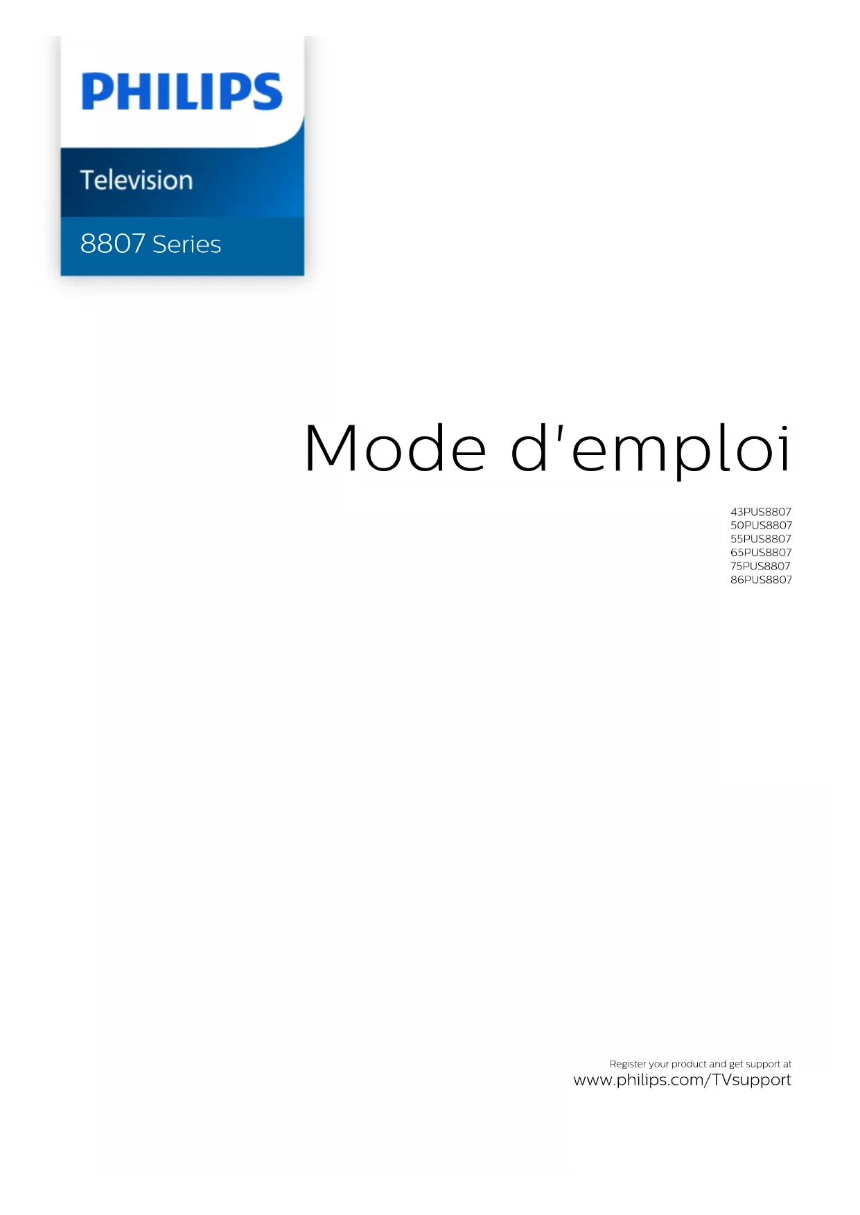 The One 50PUS8807 - Téléviseur PHILIPS - Notice d'utilisation et mode d'emploi gratuit