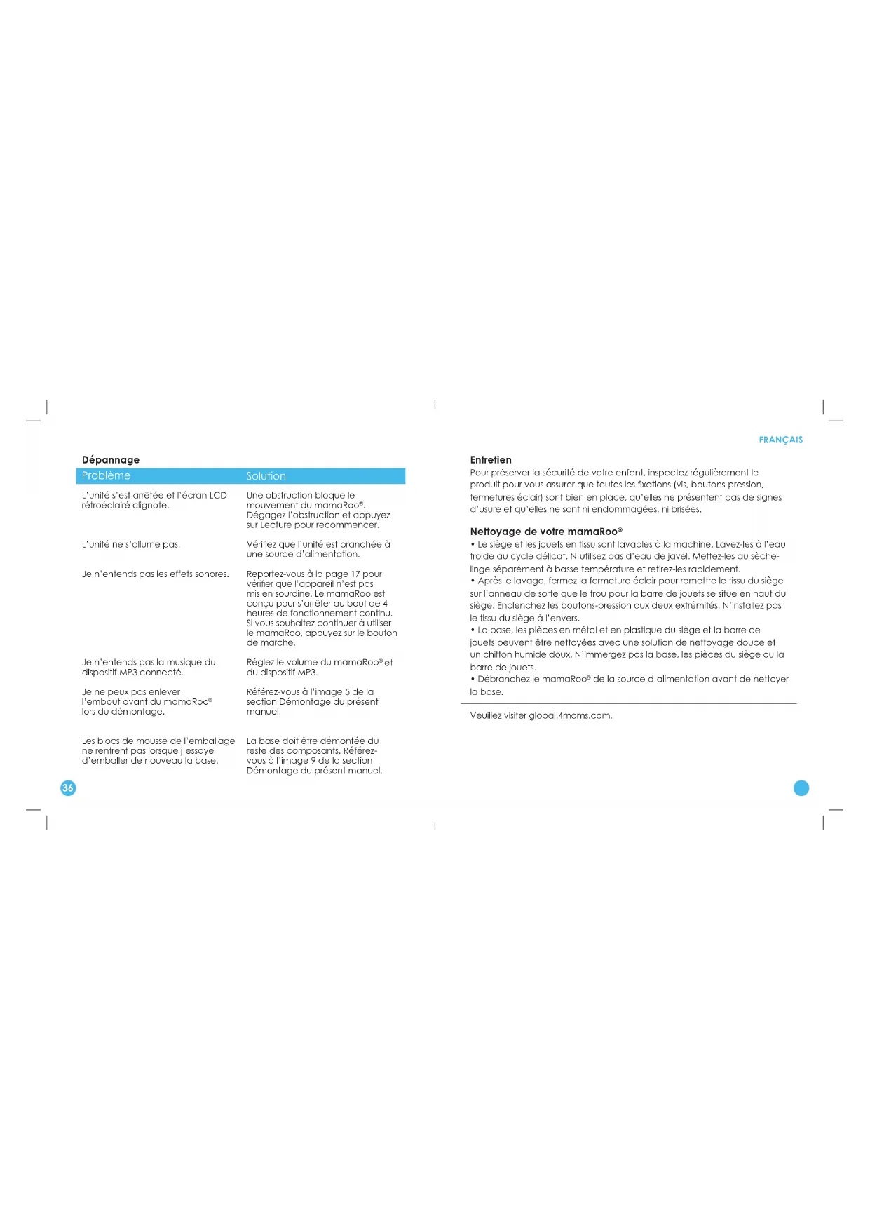 de la source d’alimentation avant de nettoyer la base. Veuillez visiter global.4moms.com.FRANÇAIS