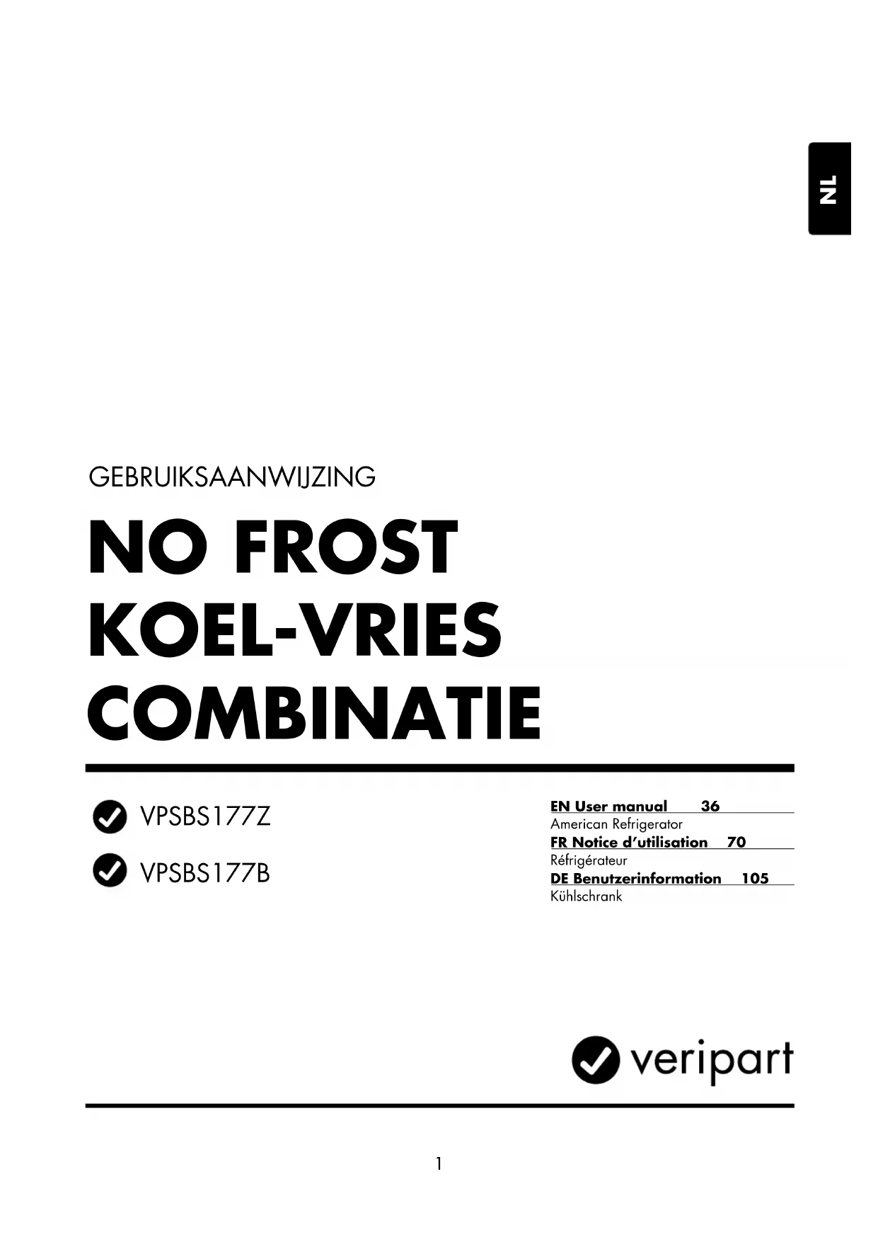 VPSBS177Z - Réfrigérateur Veripart - Notice d'utilisation et mode d'emploi gratuit