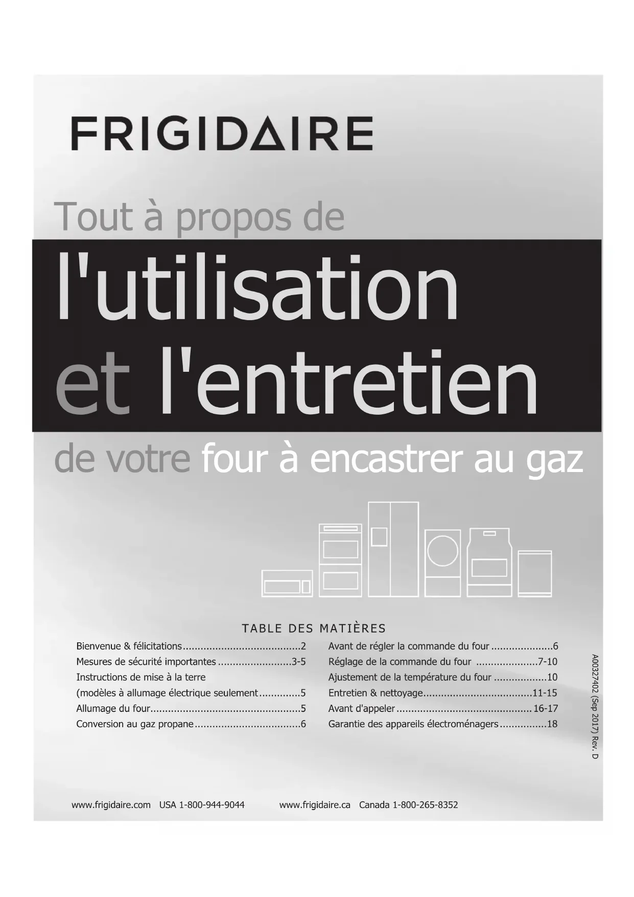 - Tout à propos de l'utilisation et l'entretien de votre four à encastrer au gaz Bienvenue & félicitations p. 2