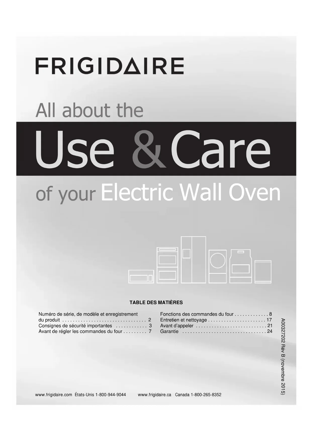 - www.frigidaire.com États-Unis 1-800-944-9044 www.frigidaire.ca Canada 1-800-265-83522 2015 Electrolux Home Products, Inc. Tous droits réservés. Imprimé aux États-Unis Numéro de série, de modèle et enregistrement du produit p. 2
