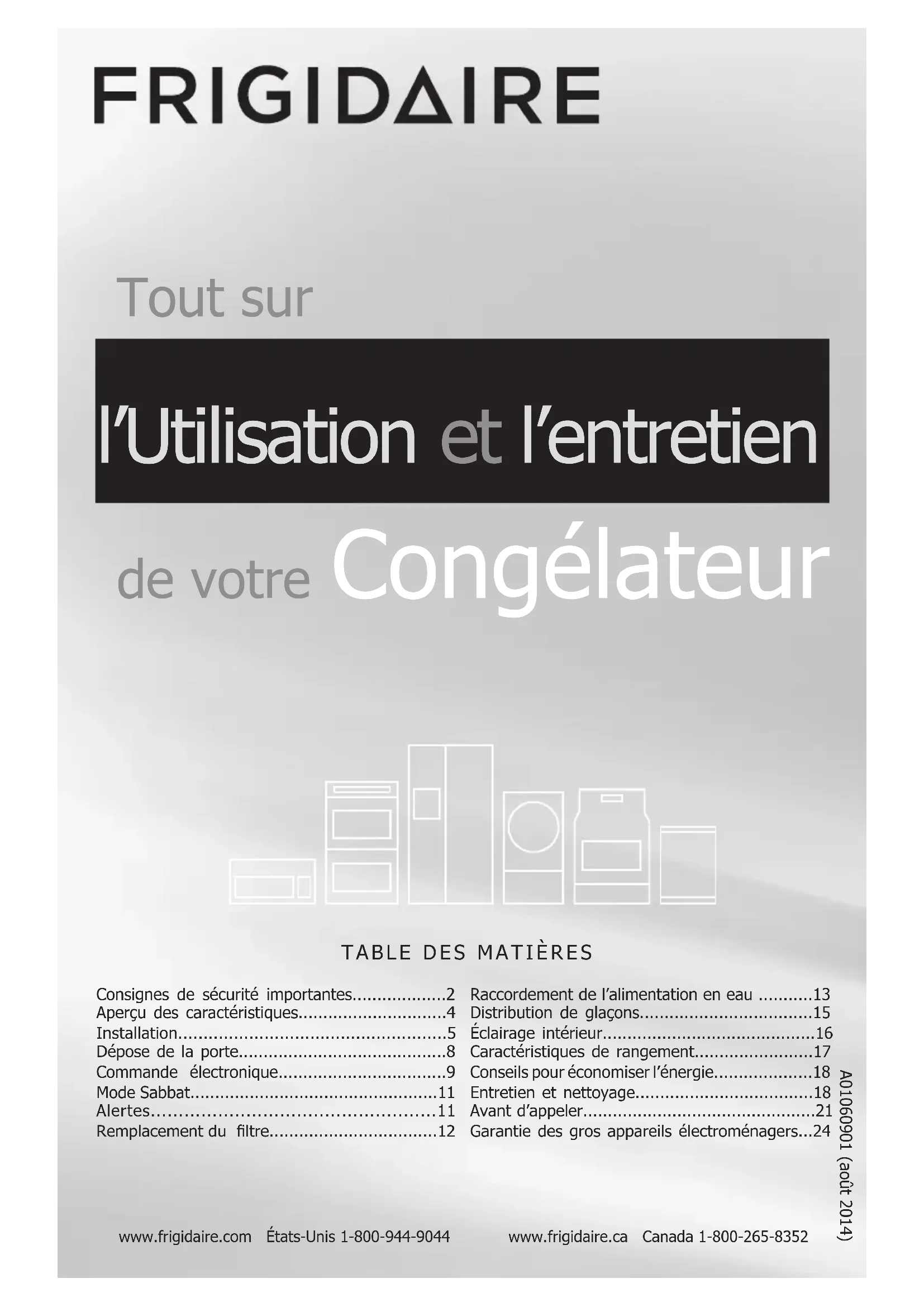 - www.frigidaire.com États-Unis 1-800-944-9044 www.frigidaire.ca Canada 1-800-265-8352 Tout sur l’Utilisation et l’entretien de votre Congélateur Consignes de sécurité importantes p. 2