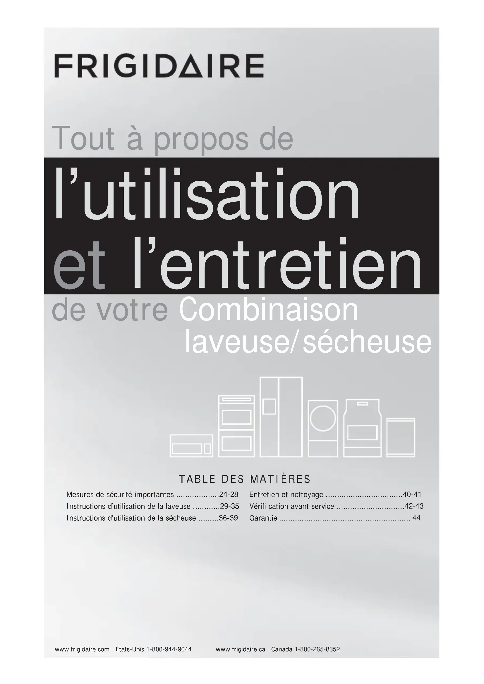 - Tout à propos de l’utilisation et l’entretien de votre Combinaison laveuse/sécheuse Mesures de sécurité importantes p. 24