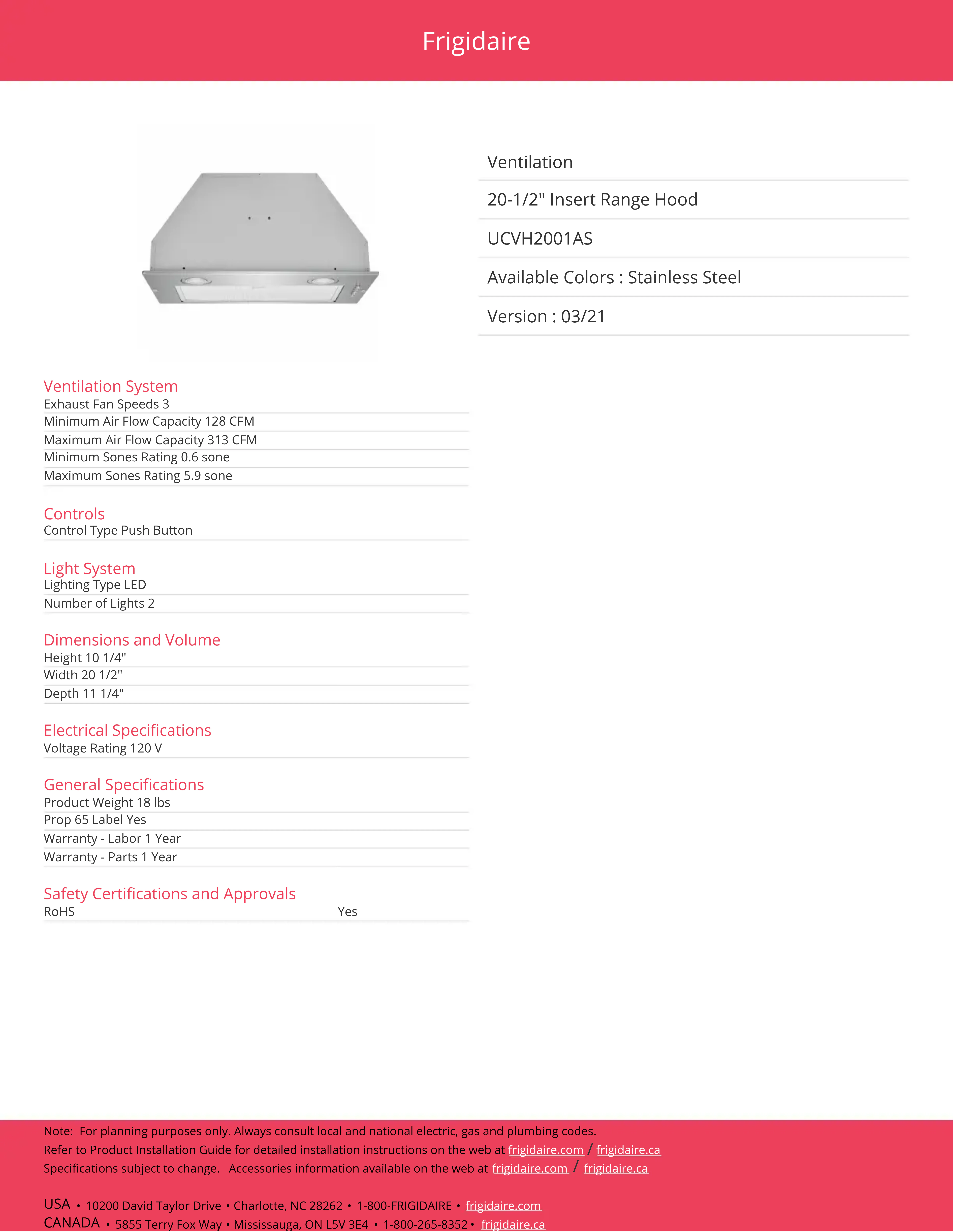 Retrouvez gratuitement la notice de l'appareil UCVH2001AS FRIGIDAIRE au format PDF.