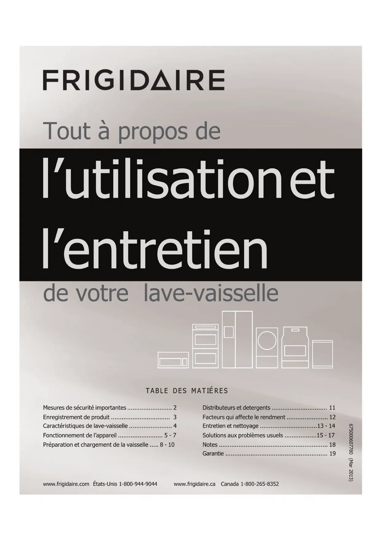FGHD2491LW - Lave-vaisselle FRIGIDAIRE - Notice d'utilisation et mode d'emploi gratuit