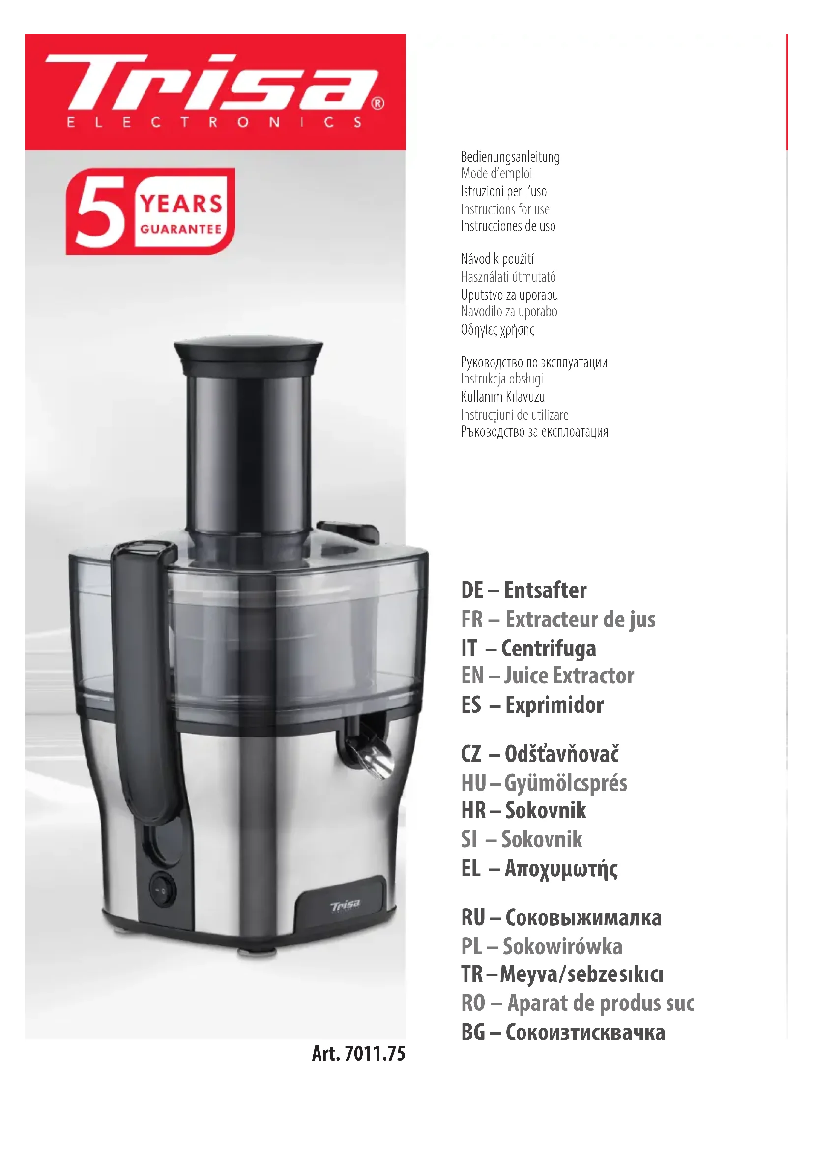 Retrouvez gratuitement la notice de l'appareil Pure Juice 7011.75 TRISA au format PDF.