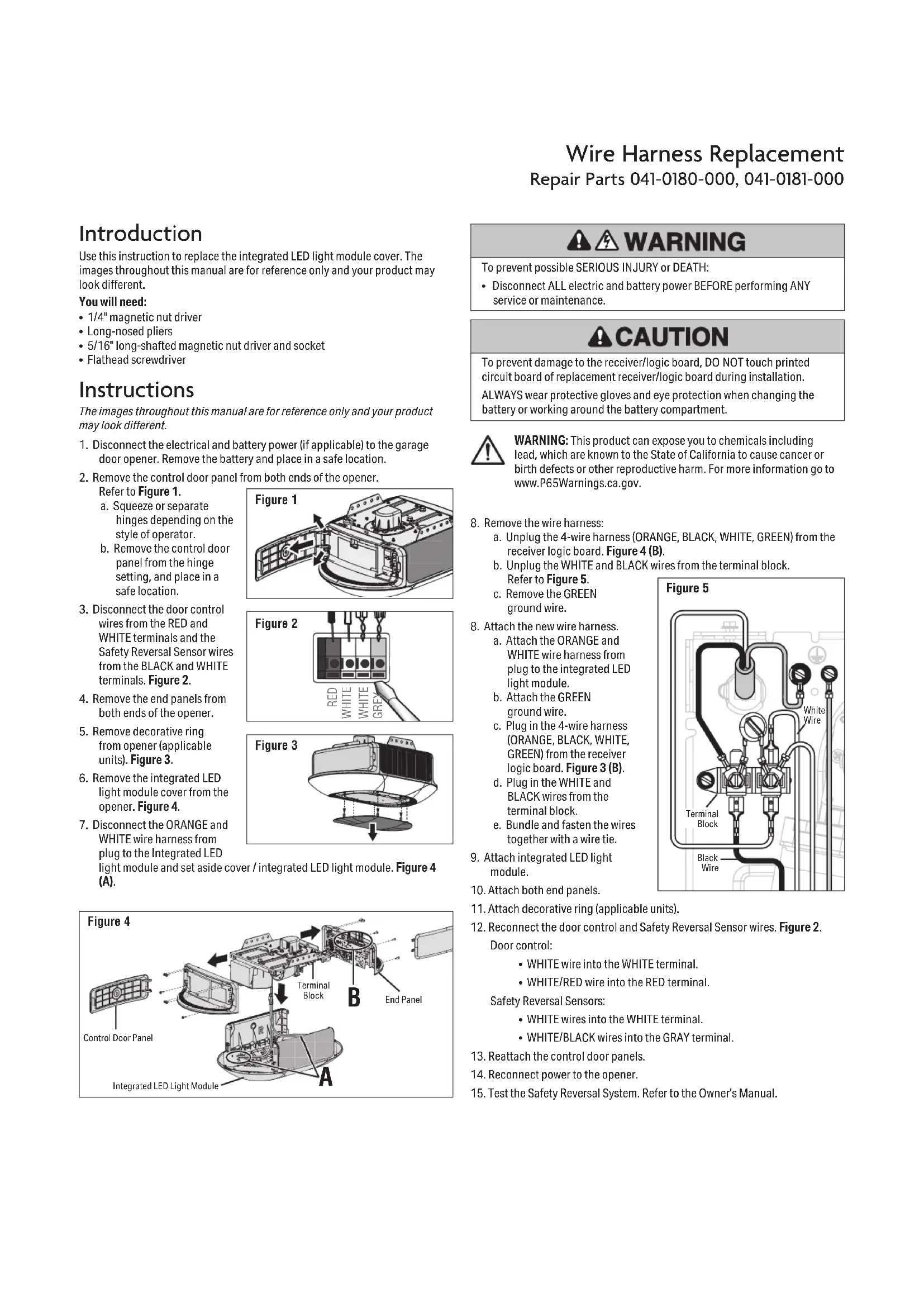 Voir la Figure1. a. Pressez ou séparez les charnières selon le type d’opérateur b. Retirez le panneau de la porte de commande de ses charnières et mettez- le dans un endroit sûr.