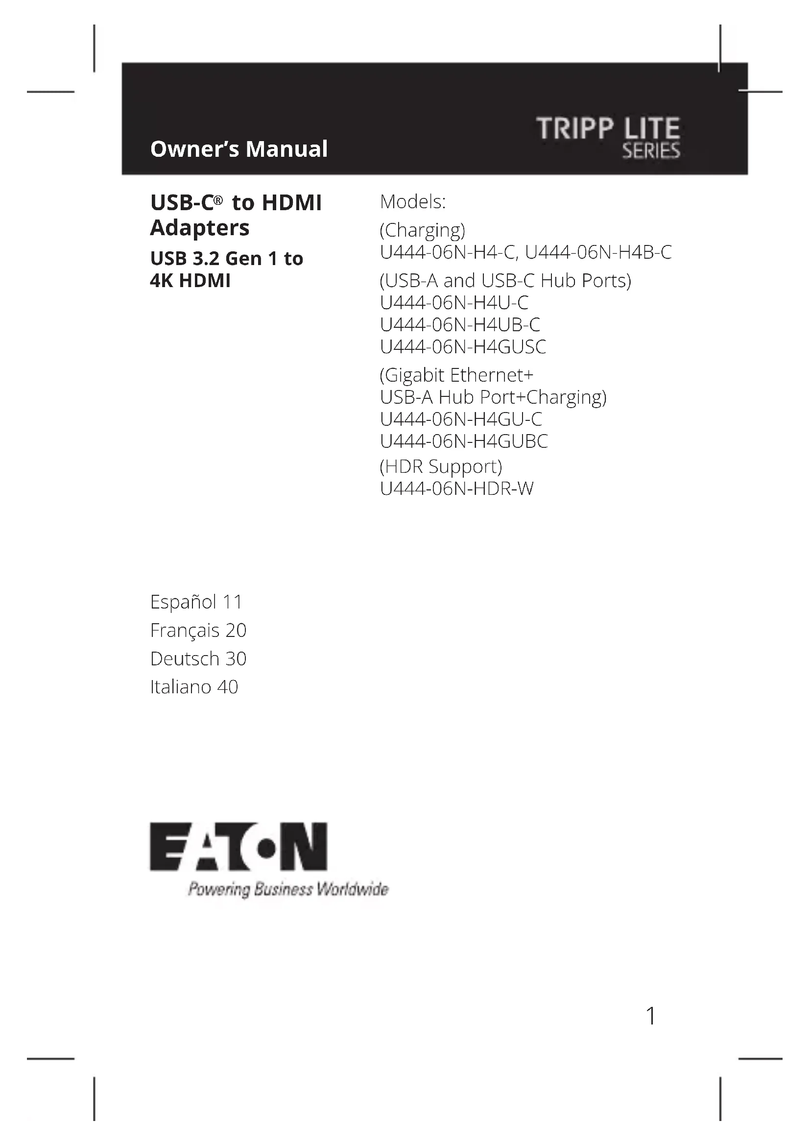 - Renvoyer le nouvel équipement pour recyclage lorsqu'il devient un déchet en n de vie Eaton mène une politique d'amélioration continue. Les caractéristiques peuvent être modiées sans préavis. Conformité aux normes30 Betriebsanleitung Modelle: (Aufladen) U444-06N-H4-C, U444-06N-H4B-C (USB-A- und USB-C-Hub- Anschlüsse) U444-06N-H4U-C U444-06N-H4UB-C