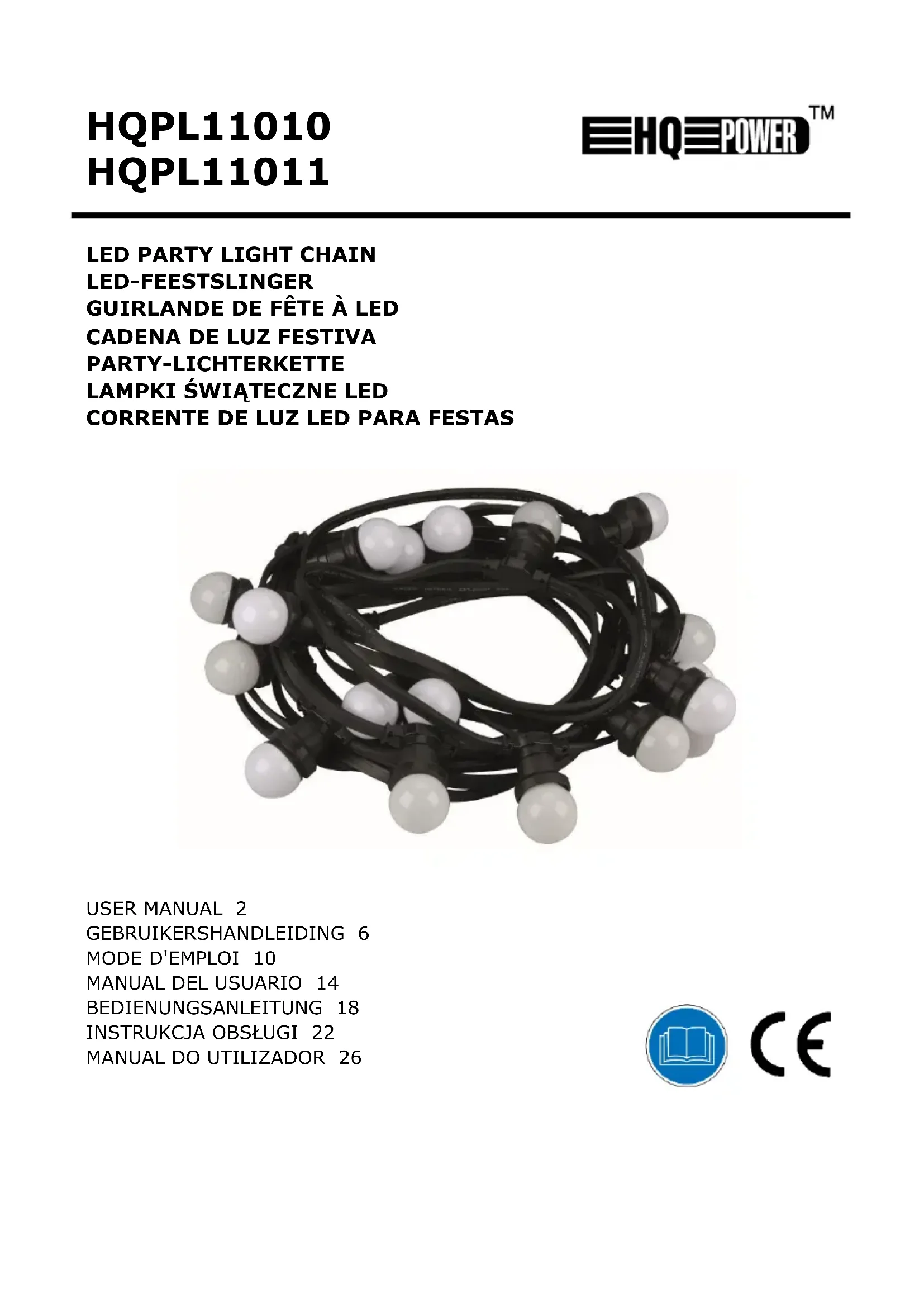 - 20 lampes multicolores LED, E27 : o HQPL11010 : 4 pcs de chaque couleur (rouge, jaune, vert, bleu, blanc) o HQPL11011 : 20 pcs blanc chaud.
