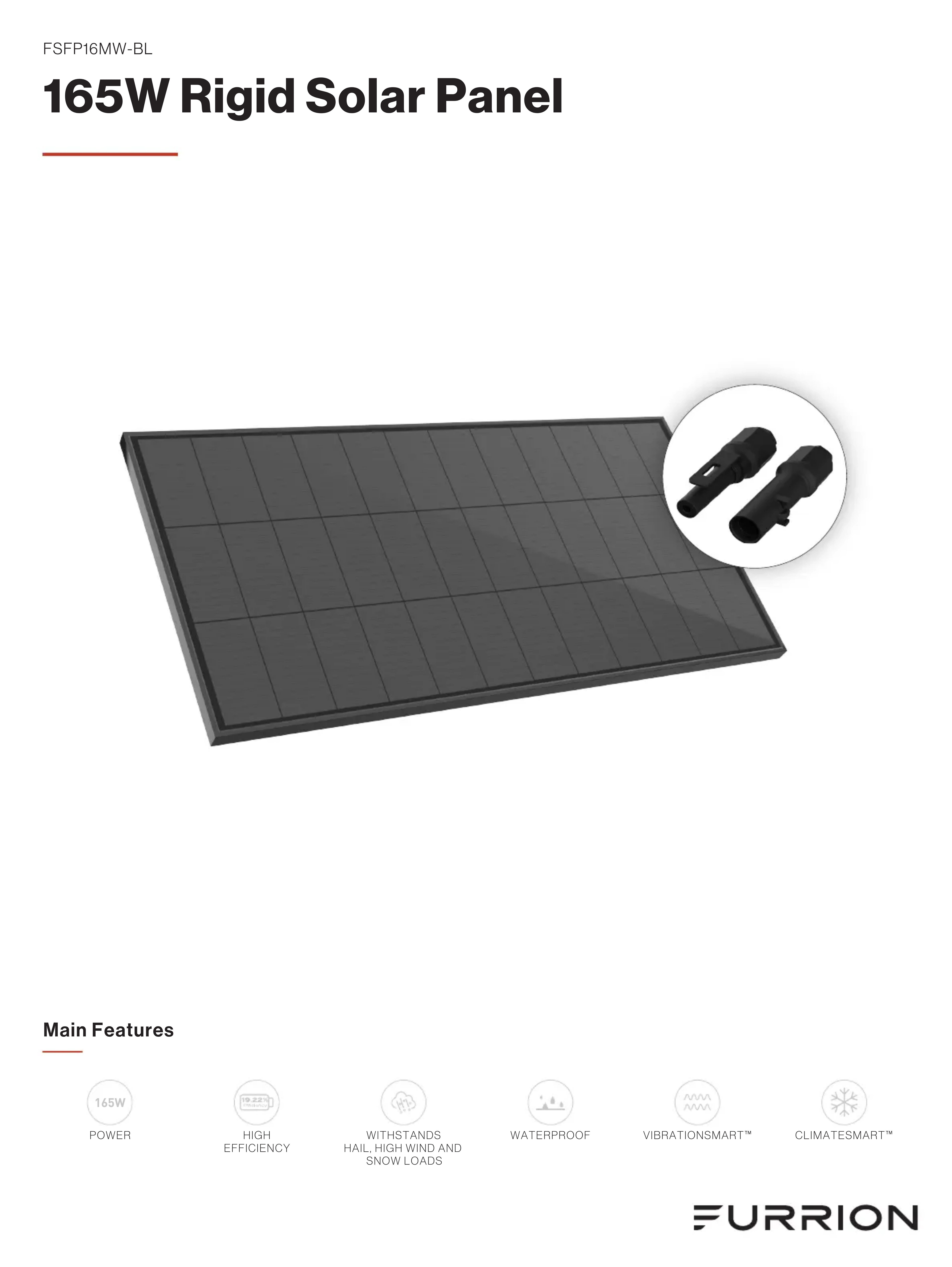 | Caractéristiques techniques | Panneau solaire Furrion FSFP16MWBL, 160W, 12V, technologie monocristalline |
