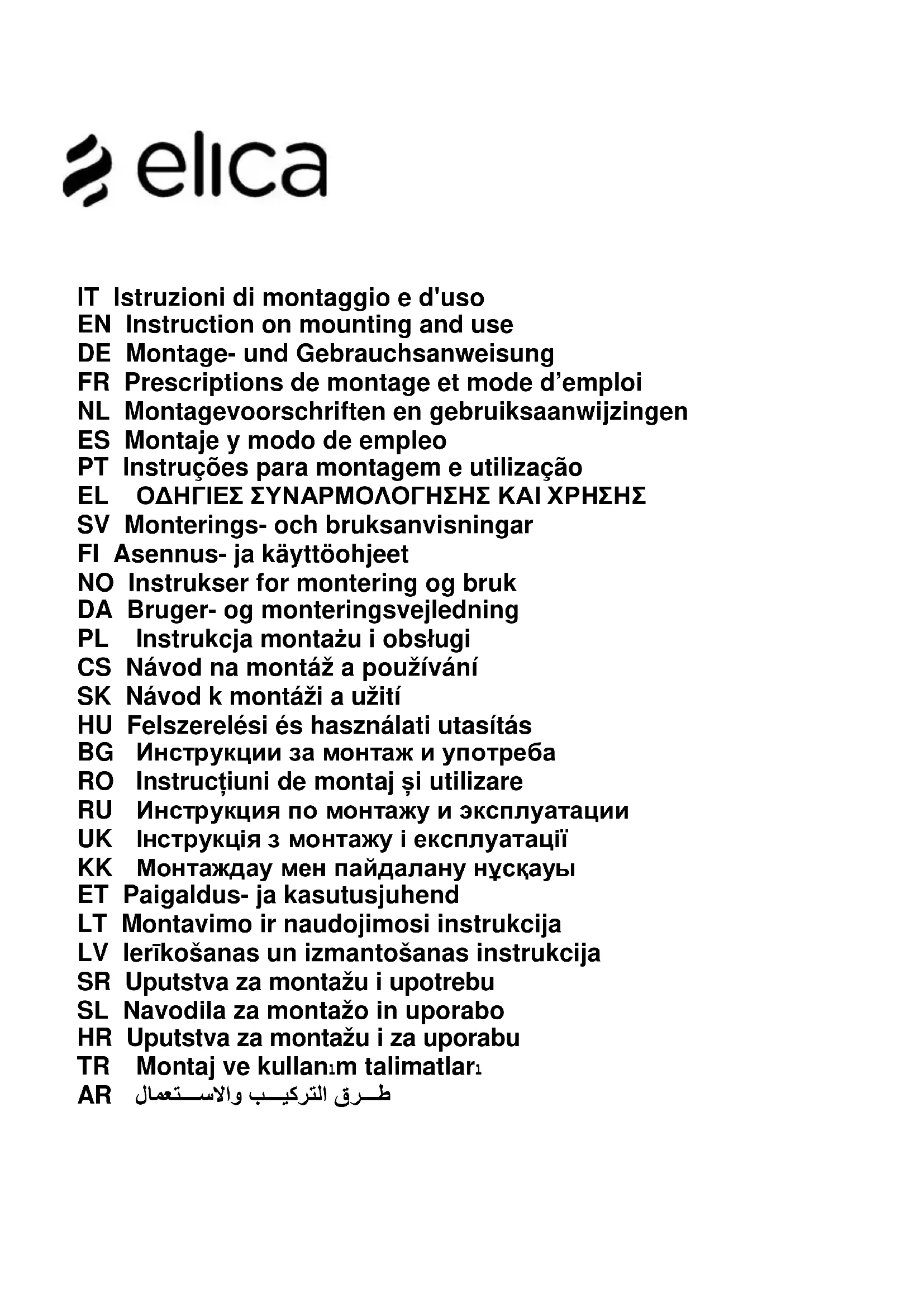 - Disponibilité dans les pays. Le service Elica Connect est disponible dans certains pays. Pour de plus amples informations, visitez la section dédiée du site www.elica.com.
