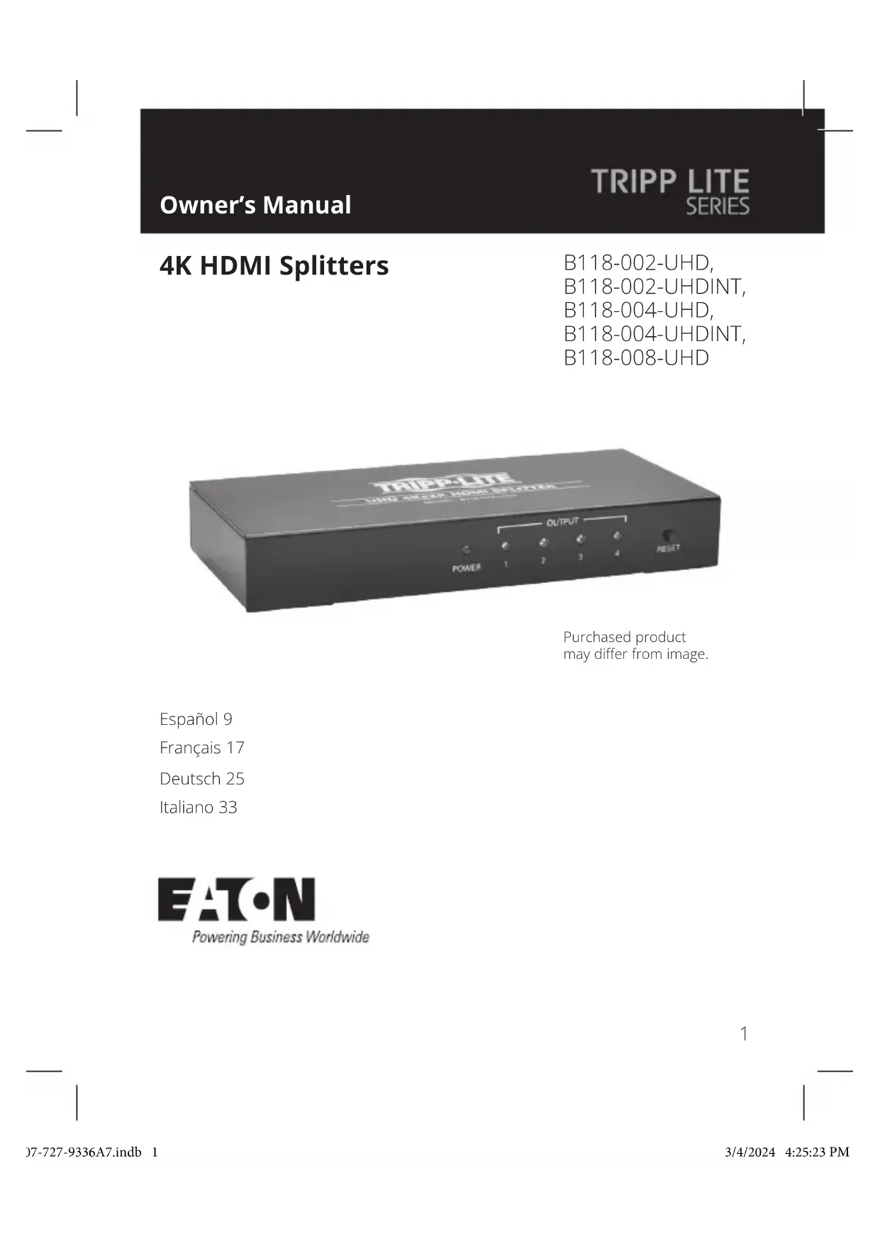 MODE D'EMPLOI B118002UHDINT Tripp Lite
