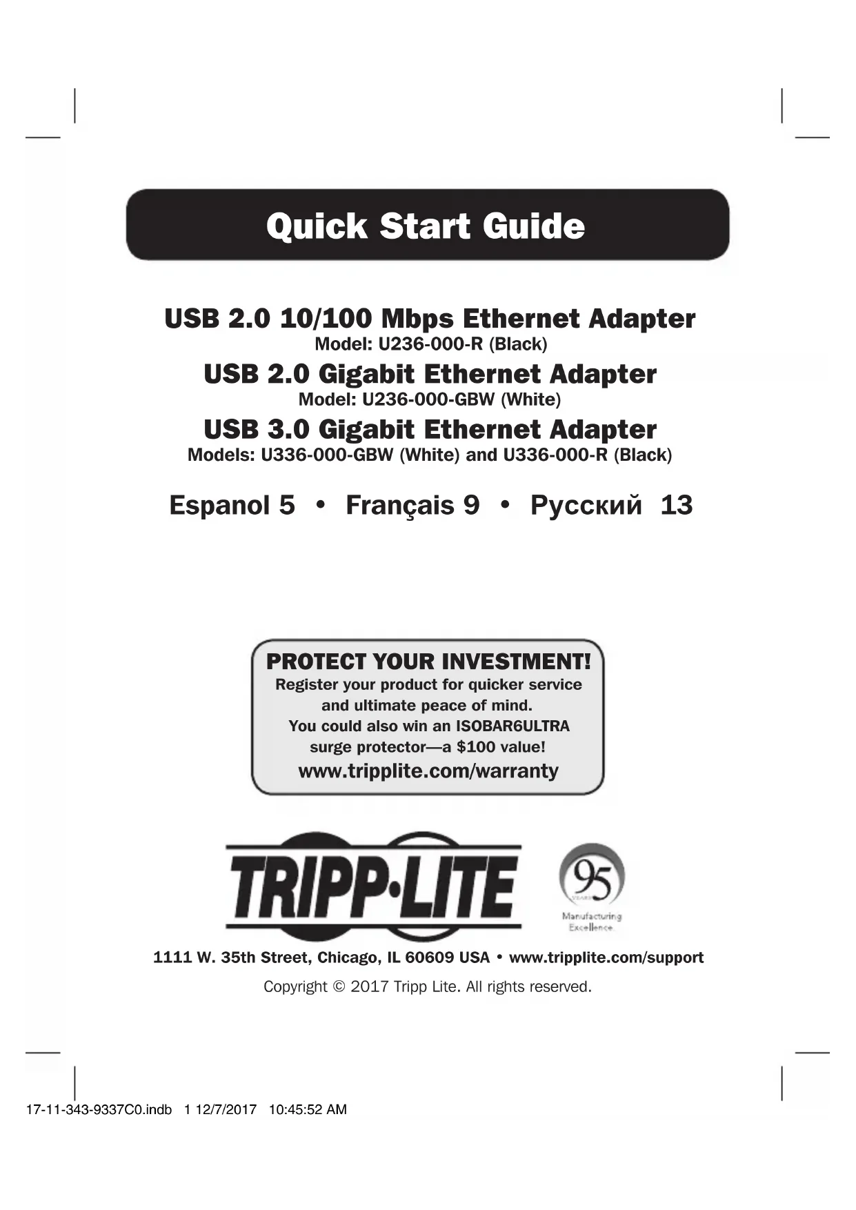 U236000R - Carte réseau / adaptateur Tripp Lite - Notice d'utilisation et mode d'emploi gratuit