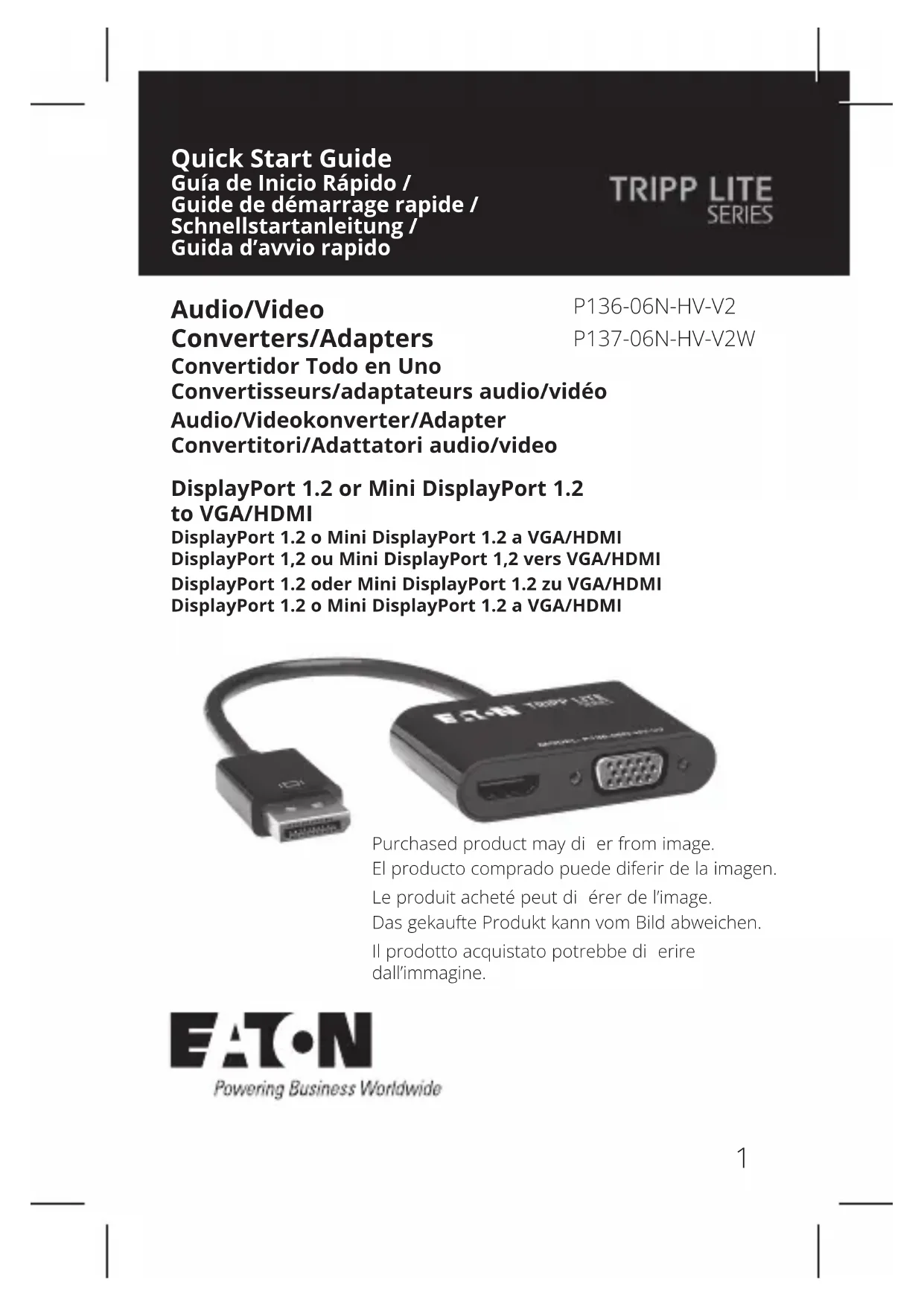 P13606NHVV2BP - Convertisseur audio/vidéo Tripp Lite - Notice d'utilisation et mode d'emploi gratuit