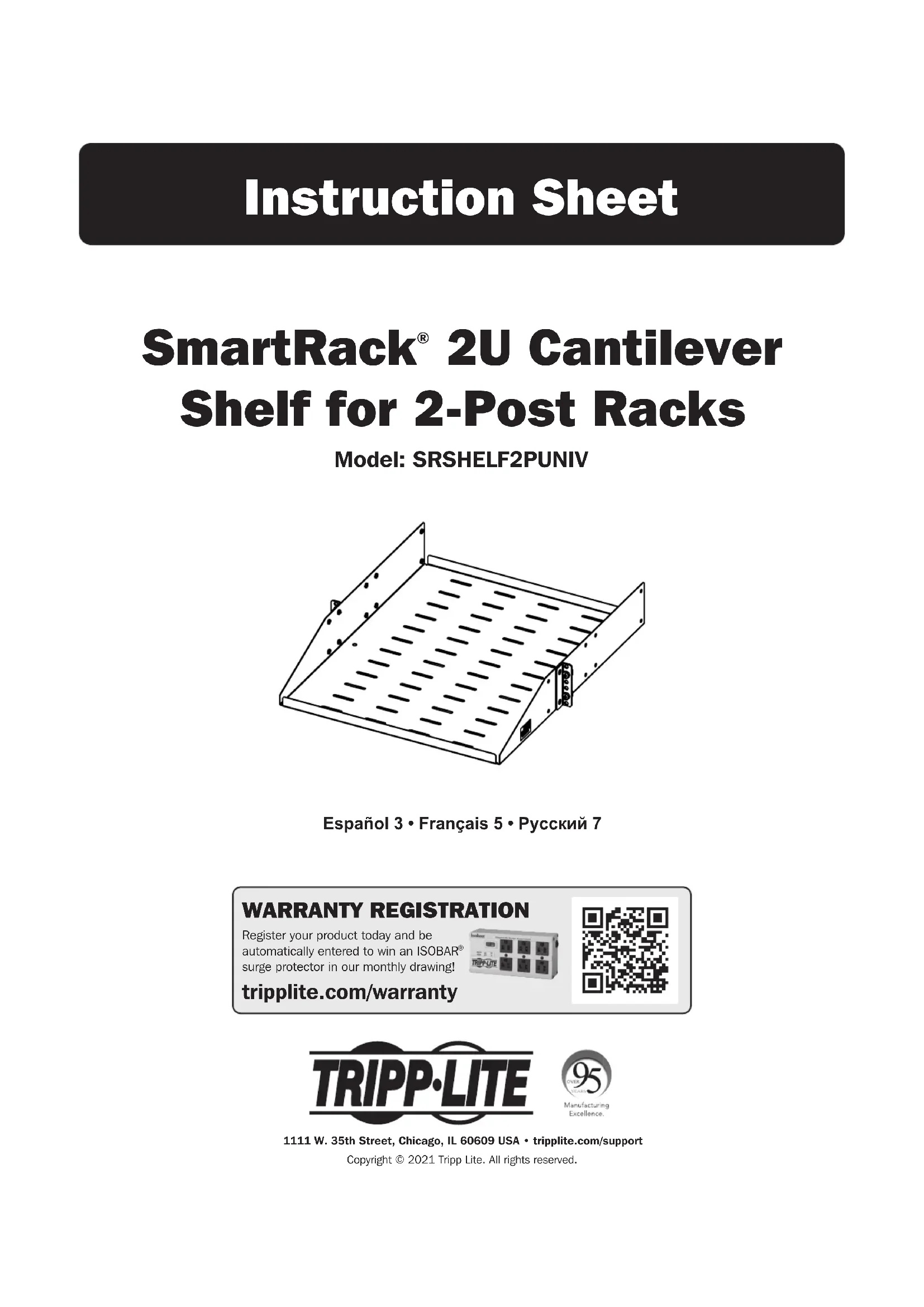 Retrouvez gratuitement la notice de l'appareil SRSHELF2PUNIV Tripp Lite au format PDF.