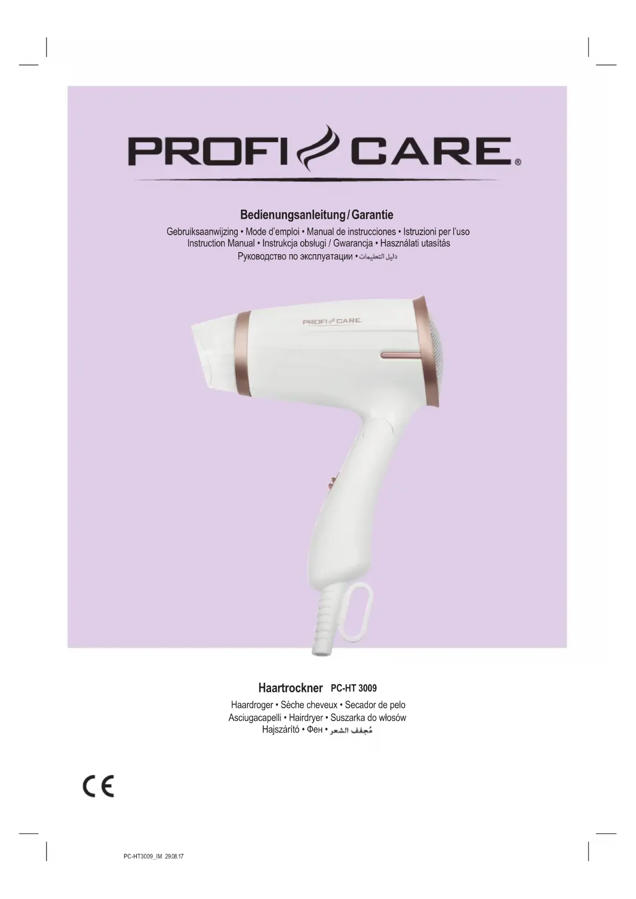PCHT 3009 - Sèche-cheveux ProfiCare - Notice d'utilisation et mode d'emploi gratuit