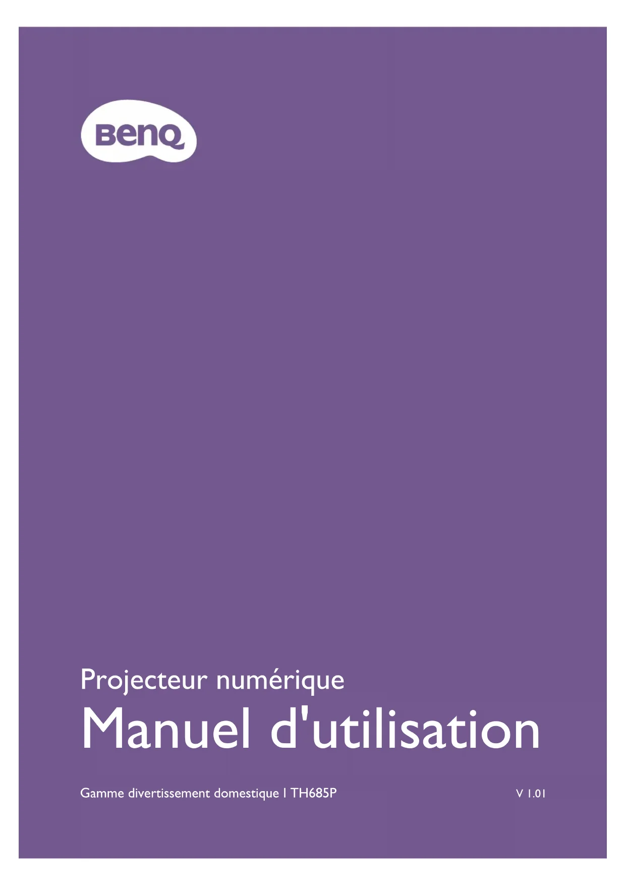 - Projecteur numérique Manuel d'utilisation Gamme divertissement domestique I TH685P V 1.012 Informations de garantie et de copyright Informations de garantie et de copyright Garantie limitée BenQ garantit ce produit contre tout défaut de matériel et de fabrication, dans des conditions normales d’utilisation et de stockage. Toute réclamation au titre de la garantie nécessite la présentation d’une preuve de la date d’achat. Si le produit devait s’avérer défectueux pendant la période de garantie, l’obligation de BenQ et votre recours se limitent au remplacement des pièces défectueuses, assorti de la main-d’œuvre nécessaire. Pour bénéficier des services de garantie, il convient d’informer immédiatement le revendeur auprès duquel vous avez acheté le produit défectueux. Important : La garantie susmentionnée est considérée caduque dès lors que l’utilisateur se sert du produit sans se conformer aux instructions écrites fournies par BenQ. L’humidité ambiante doit se situer entre 10% et 90%, la température doit être comprise entre 0°C et 35°C, l’altitude doit être inférieure à 4920 pieds et il faut éviter de faire fonctionner le projecteur dans un environnement poussiéreux. Cette garantie vous confère des droits spécifiques, auxquels peuvent s’ajouter d’autres droits qui varient d’un pays à l’autre. Pour plus d’informations, visitez le site Web www.BenQ.com. Copyright Copyright © 2023 BenQ Corporation. Tous droits réservés. Aucune partie du présent document ne peut être reproduite, transmise, transcrite, stockée dans un système d’archivage et traduite dans une langue ou dans un langage informatique, sous quelque forme ou par quelque moyen que ce soit (électronique, mécanique, magnétique, optique, chimique, manuel ou autre), sans l’autorisation écrite préalable de BenQ Corporation. Clause de non-responsabilité BenQ Corporation exclut toute garantie, expresse ou implicite, quant au contenu du présent document, notamment en termes de qualité et d’adéquation à un usage particulier. Par ailleurs BenQ Corporation se réserve le droit de réviser le présent document et d’y apporter des modifications à tout moment sans notification préalable. *DLP, Digital Micromirror Device et DMD sont des marques commerciales de Texas Instruments. Toutes les autres marques sont la propriété de leurs détenteurs respectifs. Brevets Veuillez aller à http://patmarking.benq.com/ pour les détails sur la couverture des brevets des projecteurs BenQ.3 Table des matières Table des matières Informations de garantie et de copyright p. 2