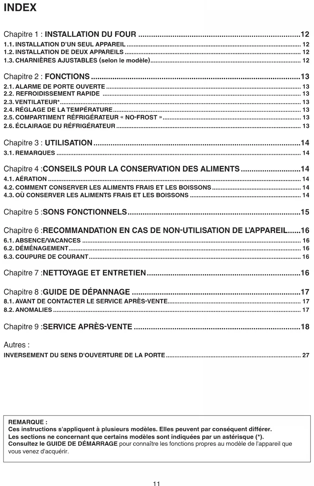 2.1. ALARME DE PORTE OUVERTE 13 2.2. REFROIDISSEMENT RAPIDE 13 2.3. VENTILATEUR* 13 2.4. RÉGLAGE DE LA TEMPERATURE 13 2.5. COMPARTIMENT RÉFRIGÉRATEUR “NO-FROST” 13 2.6. ÉCLAIRAGE DU RÉFRIGÉRATEUR 13