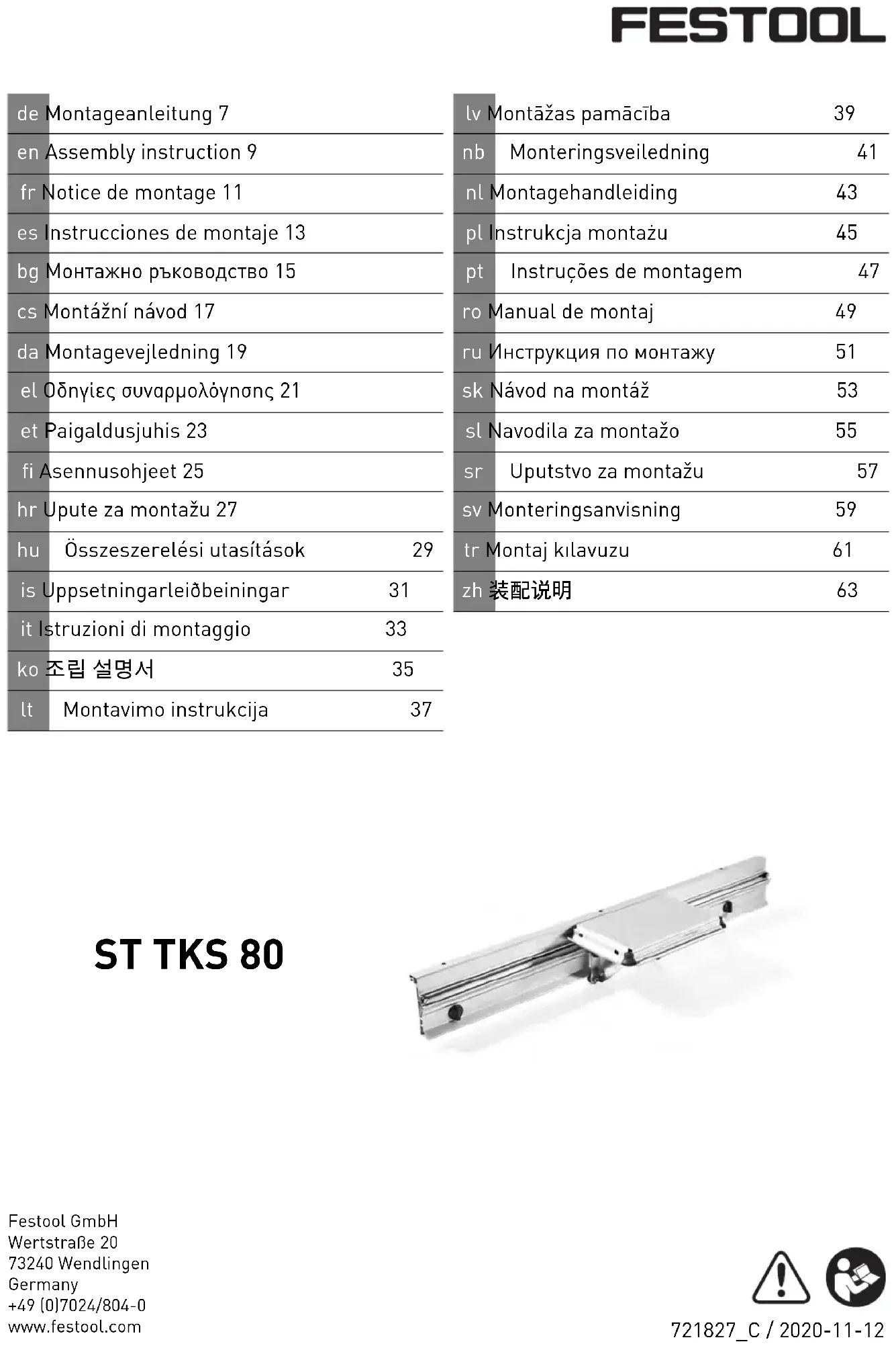 Téléchargez la notice de votre Fraiseuse au format PDF gratuitement ! Retrouvez votre notice ST TKS 80 - FESTOOL et reprennez votre appareil électronique en main. Sur cette page sont publiés tous les documents nécessaires à l'utilisation de votre appareil ST TKS 80 de la marque FESTOOL.