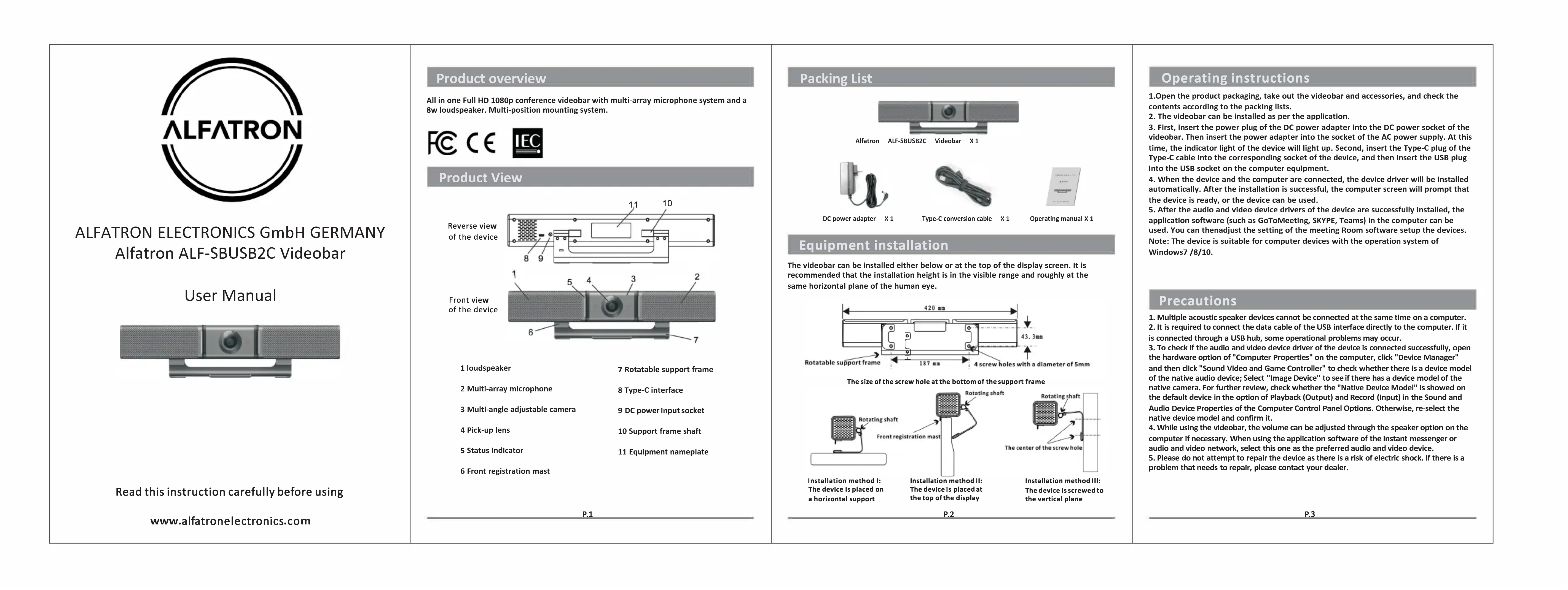 ALFSBUSB2C - Système de vidéo conférence Alfatron - Notice d'utilisation et mode d'emploi gratuit