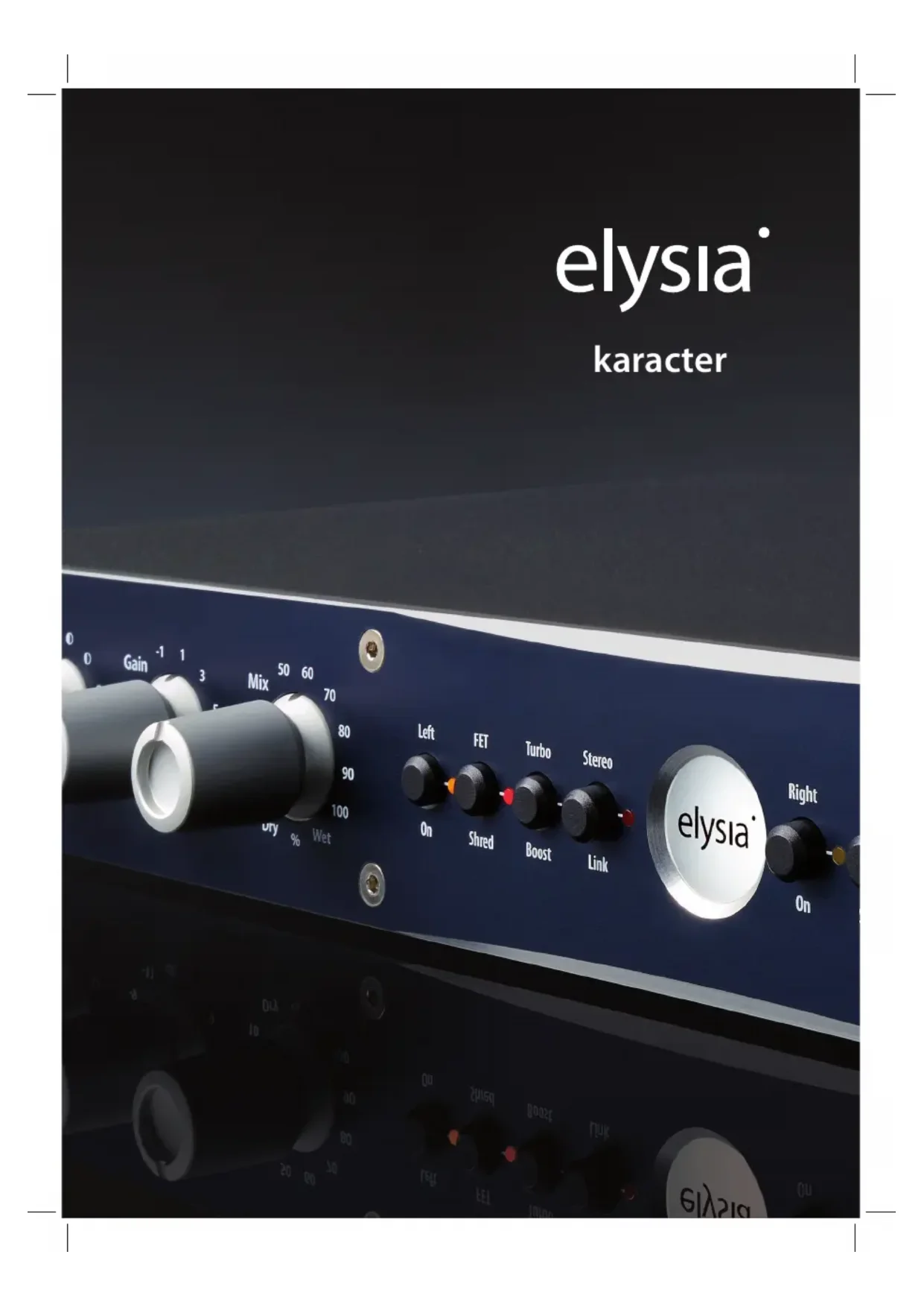 - 100% Wet (dépend des réglages Drive et Gain) -81 à -91 dBu Plage dynamique, 20 Hz - 22 kHz: 112 dB Niveau d’entrée/de sortie max: +21 dBu/+21 dBu Impédance d’entrée/de sortie: 10 kOhm/68 Ohm Conformité CE La conformité de cet appareil aux directives européennes est conrmée par le marquage CE apposé sur l’appareil. Cette déclaration n’est plus valide en cas de modication non-autorisée de l’appareil. Nettetal, 01.04.2016 - Ruben Tilgner42 Garantie L’karacter est couvert par une garantie contre tous défauts concernant les pièces et la main d’oeuvre limitée à une période de 2 ans à compter de la date d’achat du matériel neuf. L’usure naturelle n’est pas couverte par cette garantie. Les réparations ou les remplacements n’étendront pas la période de garantie. La garantie est donnée à l’acheteur initial uniquement et n’est pas trans- férable. elysia n’accordera de garantie qu’aux produits achetés à des dis- tributeurs autorisés par elysia. Sauf autorisation préalable d’elysia, la ga- rantie est seulement valable que dans le pays où s’est fait l’achat. Toute garantie se voit nulle si le produit a été endommagé lors d’une mauvaise utilisation, un accident, une négligence, une modication, un bricolage, ou quelque altération non autorisée par qui que ce soit d’autre que le personnel de maintenance autorisé d’elysia. Le garant n’assume aucune responsabilité en ce qui concerne les autres dommages, incidents, ou conséquences liés à un mauvais fonctionne- ment de l’appareil. Toutes et chacune des garanties de commercialisabi- lité et adéquation impliquées par la loi sont limitées à la duration de la garantie ici exprimée. elysia ne paiera pas pour des envois par fret express ou 24h, ou pour des destinations se trouvant en dehors d’Allemagne. Tous dommages causés par le transport ne sont pas couverts par la garantie. Cette garantie vous donne des droits spéciques et vous pourriez avoir d’autres droits qui varient d’un pays à un autre. Certaines des restrictions ci-dessus peuvent ne pas vous concerner.43 Informations légales Le contenu de ce document est sujet à modication sans avis préalable et ne peut à ce titre être considéré comme une obligation ou garantie quelle qu’elle soit du fabriquant. Aucune garantie, exprimée ou induite n’est faite quant à la qualité, la cohérence ou la véracité de ce document. Le fabriquant se réserve le droit de changer le contenu de ce document et/ou les produits associés à tout moment et ce sans avis préalable. Le fabriquant ne peut être tenu responsable des dégâts occasionnés décou- lant d’une mauvaise utilisation, ou de l’impossibilité d’utiliser ce produit ou cette documentation. L’information contenue dans ce document est soumise au copyright. Tous les droits, modications techniques ou errata sont réservés. Aucune partie de ce manuel ne peut être reproduite ni transmise sous quelque forme et pour quelque raison sans l’autorisation préalable et écrite des ayants droits. elysia et karacter sont des marques déposées d’elysia GmbH. Les autres marques contenus dans ce document sont là an d’identication uni- quement. Toutes les marques déposées, désignations de produits ou autres noms de marques utilisés dans ce document sont la propriété de leurs propriétaires respectifs. Le produit a été fabriqué conformément à la directive RoHS. Le but de cette directive de l’Union Européenne est la restriction des substances dangereuses dans les équipements électroniques (RoHS) an de protéger la santé et la nature. Version 1.1 © 2019 elysia GmbHelysia GmbH Am Panneschopp 18 41334 Nettetal Germany info@elysia.com Printed in Germany