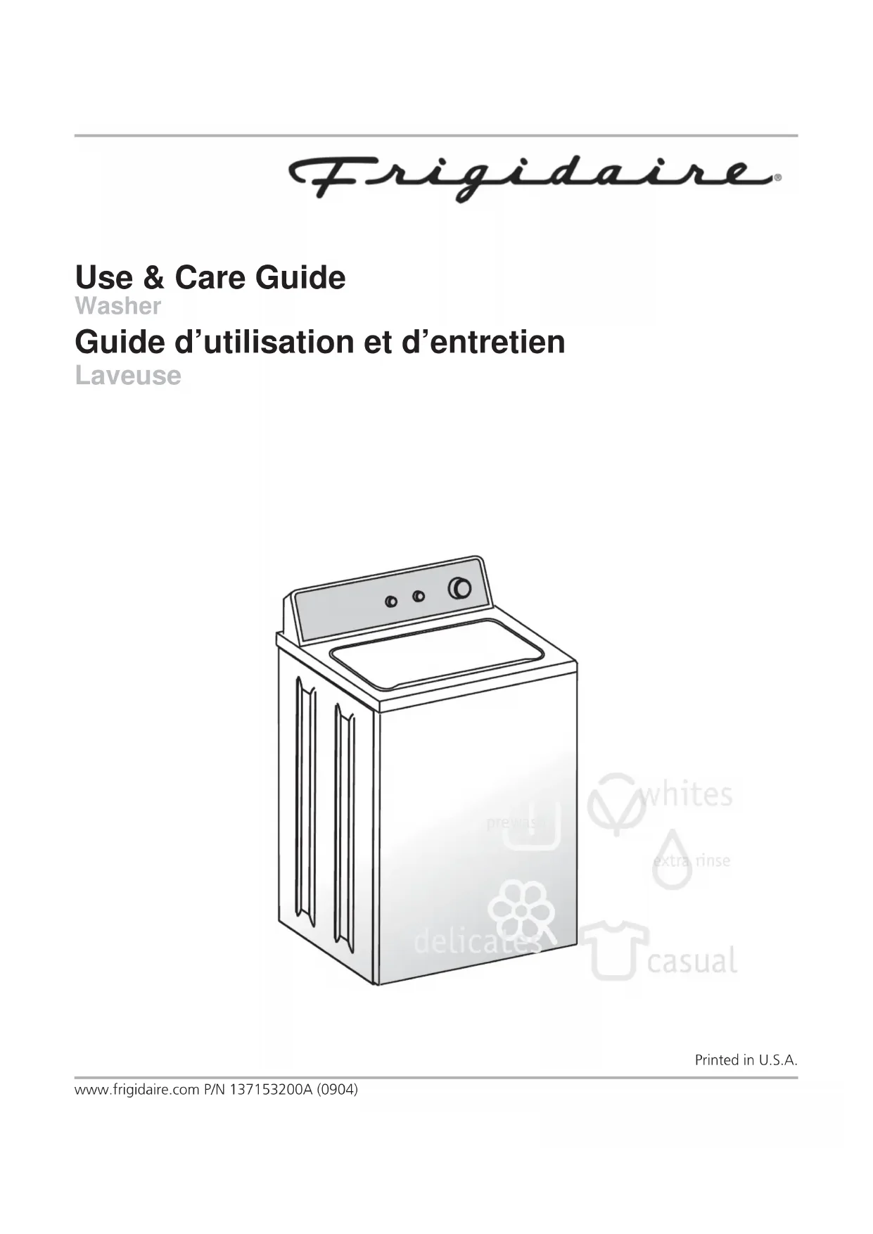 - www.frigidaire.com P/N 137153200A (0904) Use & Care Guide Washer Guide d’utilisation et d’entretien Laveuse Printed in U.S.A.15 Enregistrement du produit p. 15