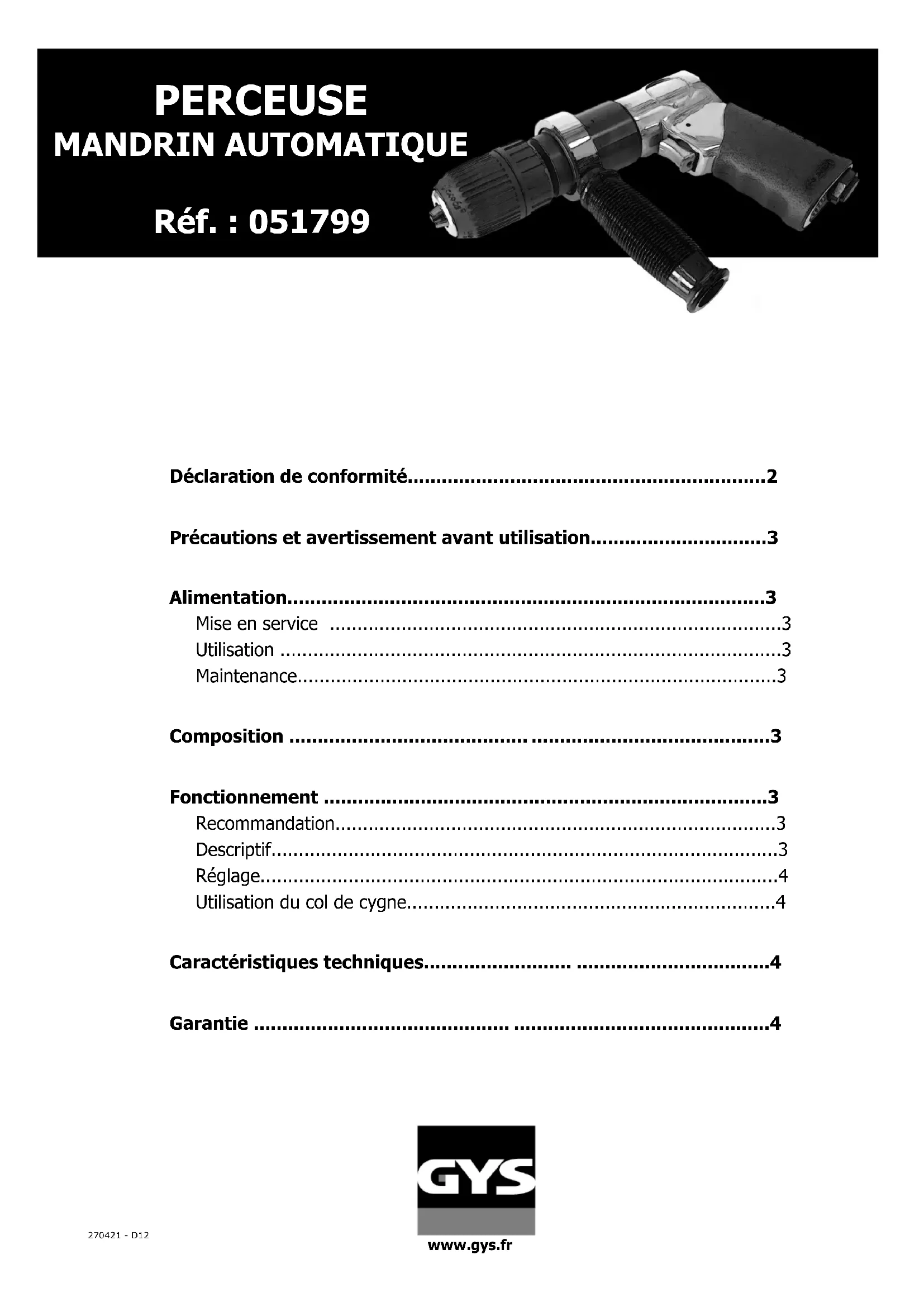 051799 - Perceuse GYS - Notice d'utilisation et mode d'emploi gratuit