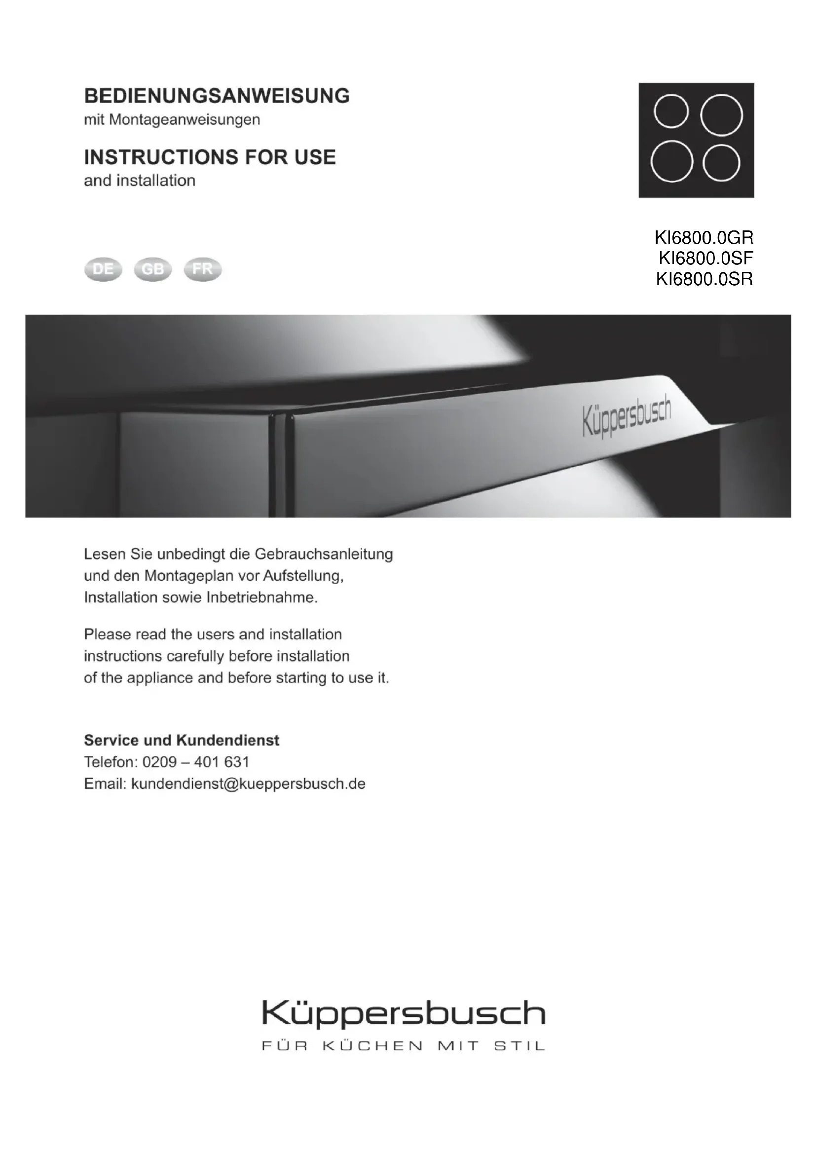 Retrouvez gratuitement la notice de l'appareil KI6800.0SF Küppersbusch au format PDF.
