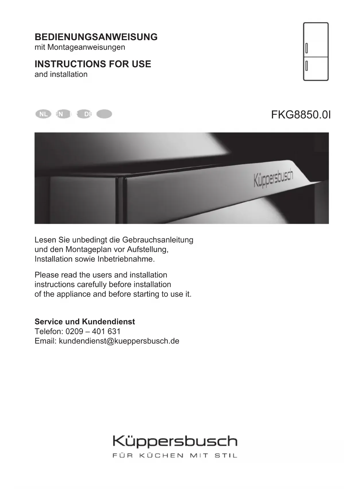 Retrouvez gratuitement la notice de l'appareil FKG8850.0i Küppersbusch au format PDF.