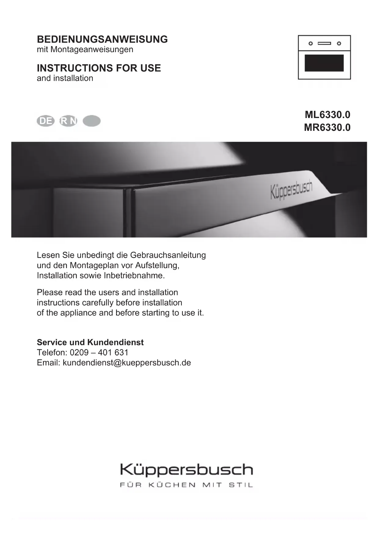 Retrouvez gratuitement la notice de l'appareil MR 6330.0S1 Küppersbusch au format PDF.